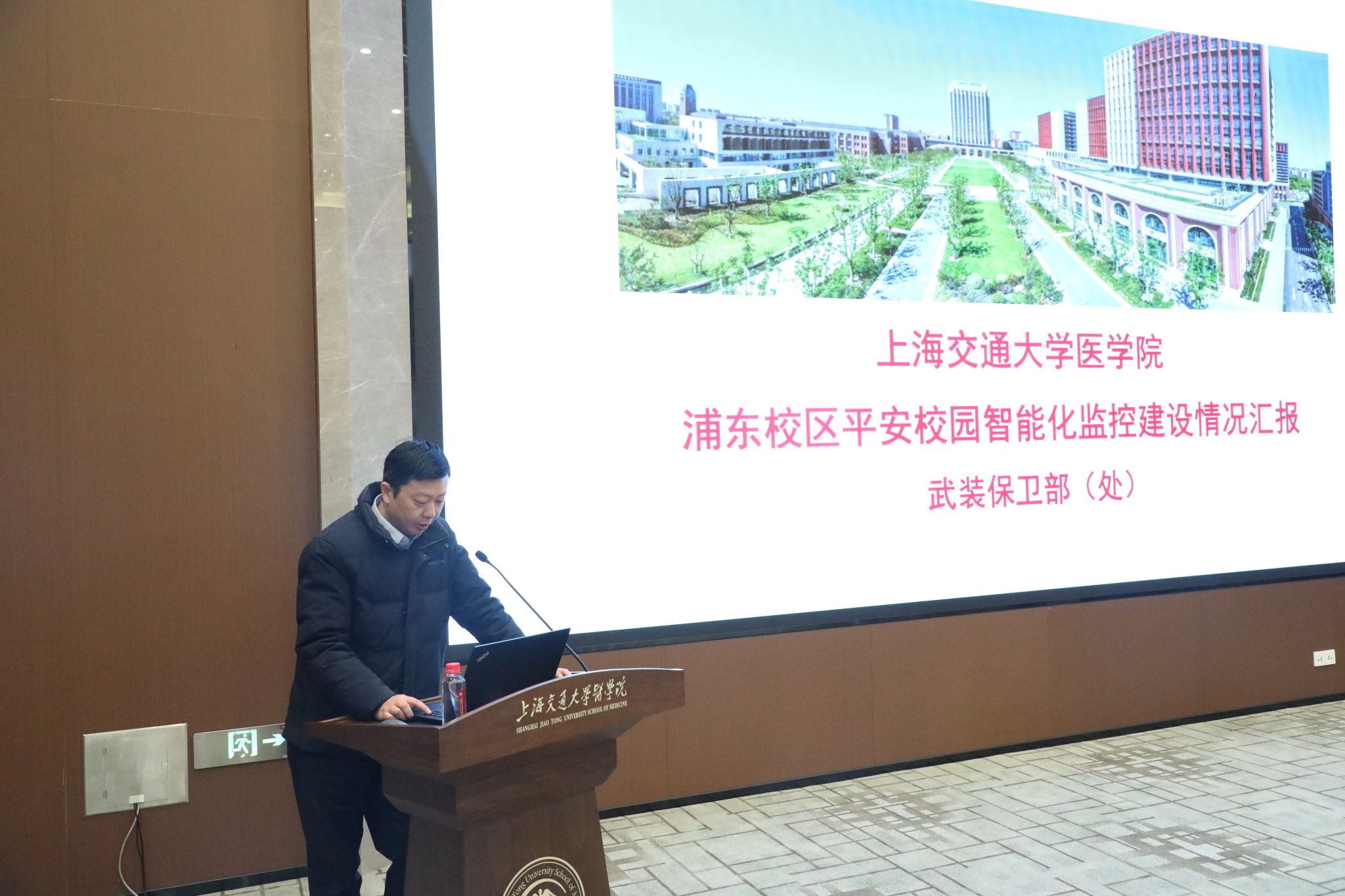 医学院武装保卫处处长路彦钧作了《上海交通大学医学院浦东校区平安校园智能化监控情况汇报》,从法律法规参照、校园安全、建设原则、建设目标、建设情况、后续举措等六个方面进行了汇报,实现公共区域监控无死角覆盖,构建集感知、分析、预警于一体的智能防控体系,提升校园安全防控能力。