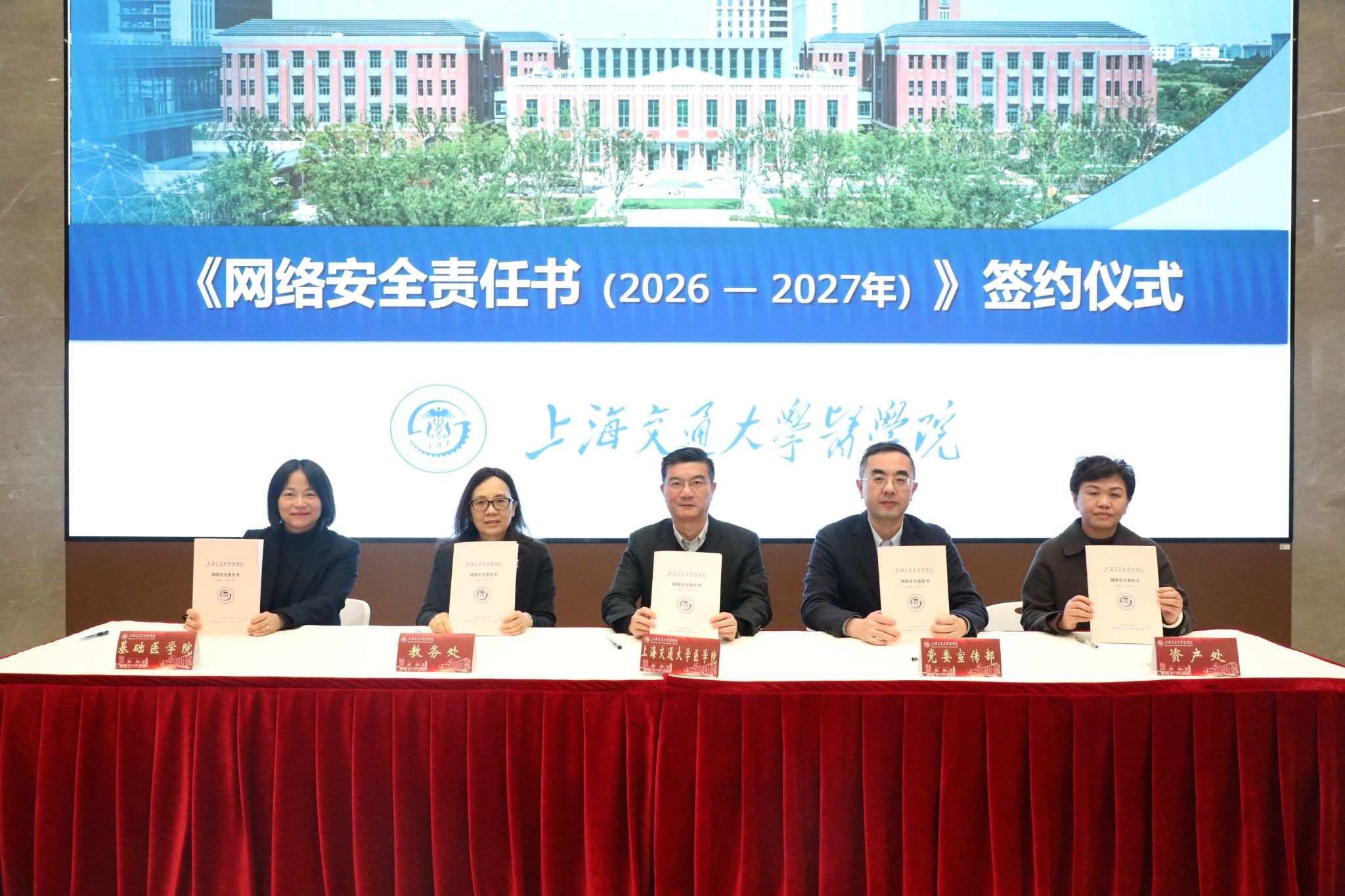 吴正一代表医学院与党委宣传部、教务处、资产管理处、基础医学院4家签约部门负责人代表共同签署了《网络安全责任书(2026-2027年)》。