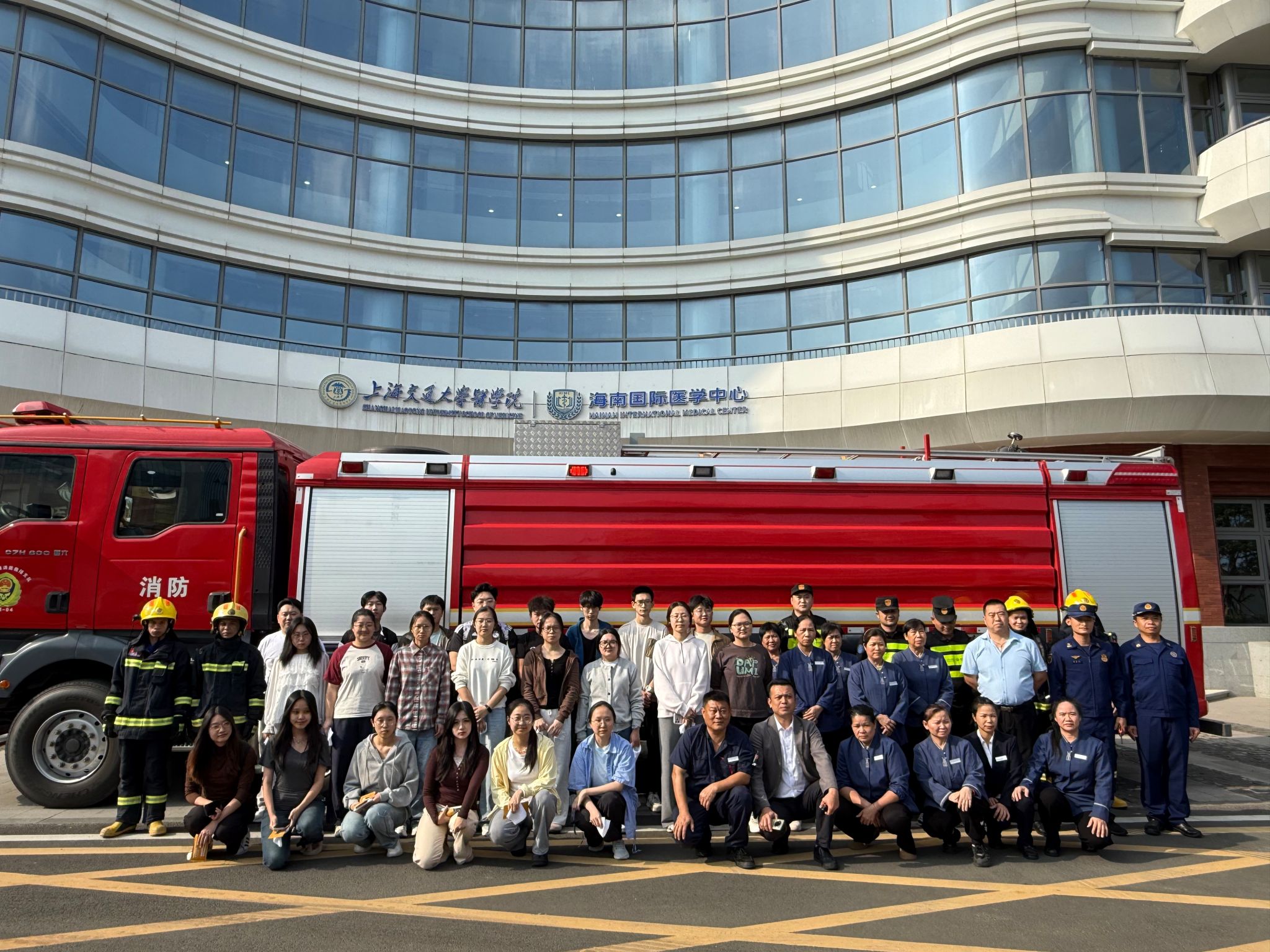 近日,上海交通大学医学院海南校区(海南国际医学中心)组织开展了消防演练与实验室安全演练活动,以切实增强师生及工作人员的应急响应与自救互救能力。演练由海南国际医学中心副主任童天朗宣布启动,琼海市消防救援大队、校区师生、后勤及实验室工作人员共同参与。