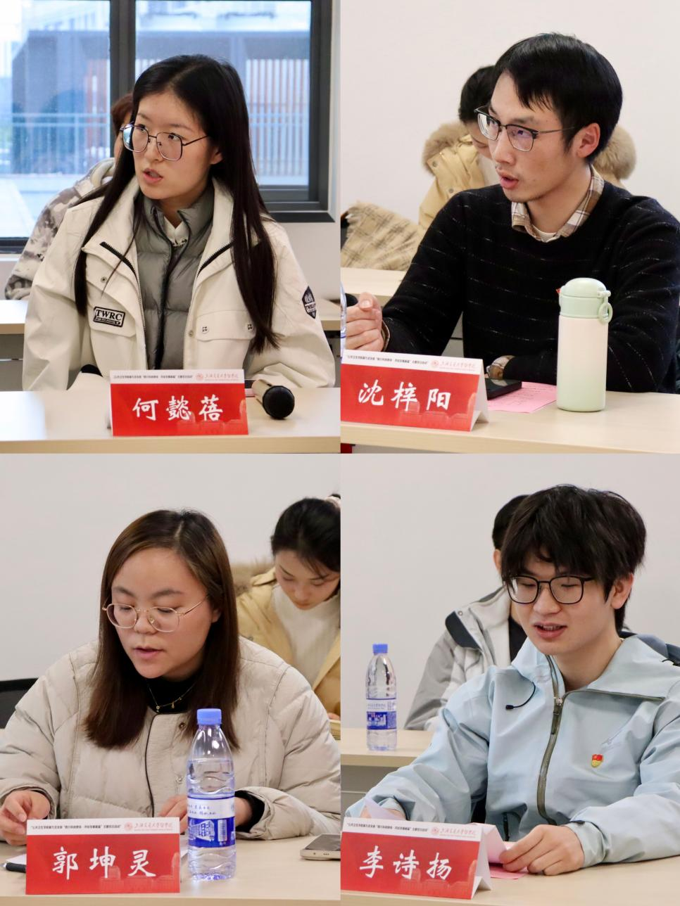 在“师生面对面座谈”环节,聚焦新校区搬迁后的学习生活体验,何懿蓓、沈梓阳、郭坤灵和李诗扬四位学生党员代表在肯定新校区整体环境提升的同时,结合切身感受提出多项优化建议。环境优化方面,代表建议完善校园道路与楼宇标识系统、优化周边公共交通衔接方案,便利师生日常出行。安全防护方面,提出在高层建筑窗户加装安全限位器等举措,筑牢校园安全防线。资源整合方面,建议利用闲置公共空间改造为休息区,提升空间利用效能。毕宇芳副院长认真听取并逐一回应,就建议可行性、现有解决方案及后续改进计划作了说明,现场气氛坦诚热烈。