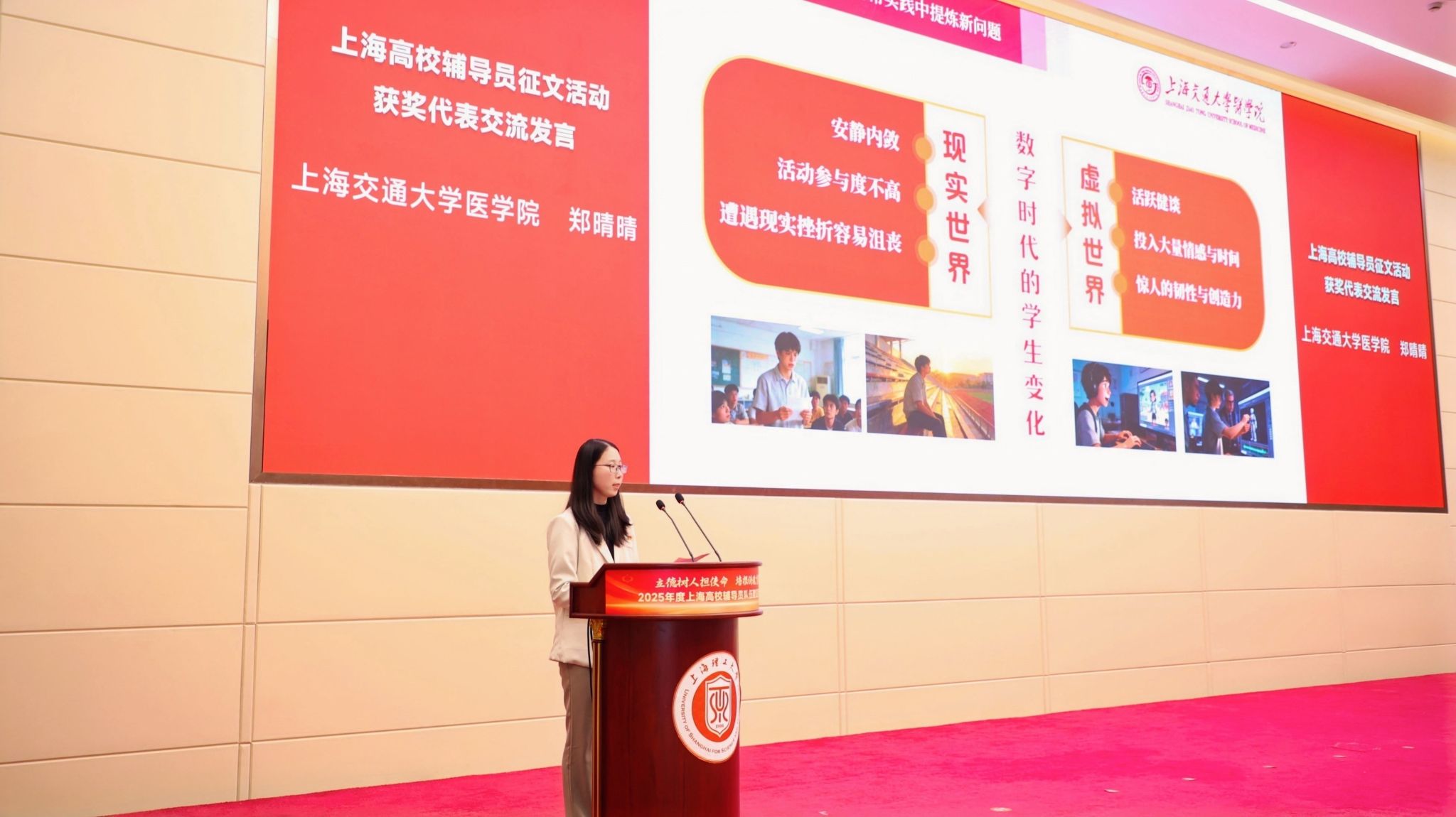 1月20日,2025年度上海高校辅导员队伍建设月总结会在上海理工大学举行。会上,总结展示了2025年度上海高校辅导员队伍建设月的工作成果,颁发了2025年上海市“最美高校辅导员”、2025年上海高校辅导员征文活动等荣誉奖项。医学院辅导员郑晴晴老师,作为上海高校辅导员征文活动获奖代表交流发言。