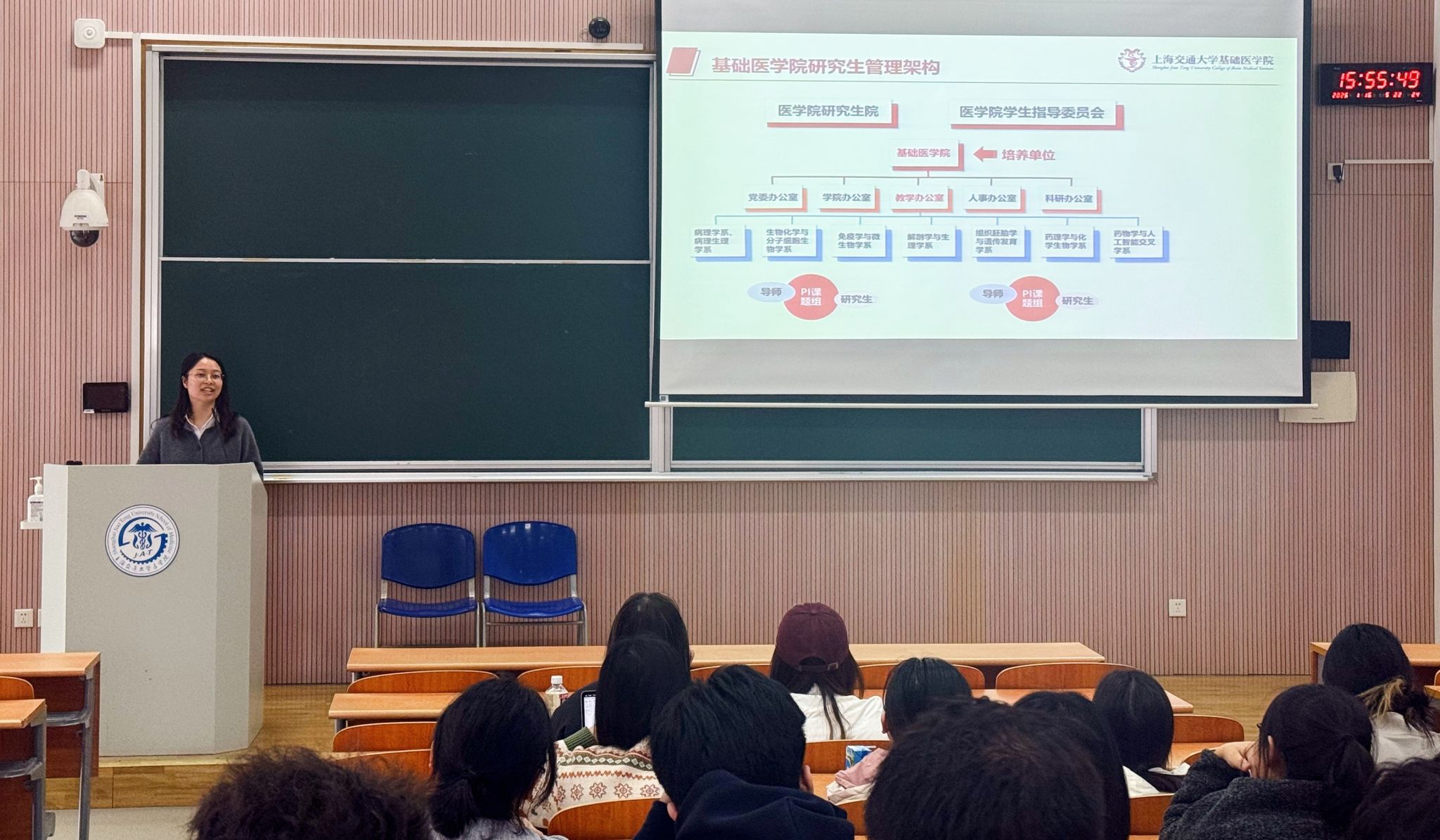 为切实保障研究生培养质量、规范开展论文答辩与学位申请、精准助力毕业生就业发展,基础医学院教学办公室紧扣研究生培养关键节点,于1月16日连续组织召开2026年研究生答辩及学位申请说明会,2026届毕业生就业导航班会,以及2025级研究生培养讲解会等三场专题说明会,为处于不同阶段的研究生提供全方位、针对性的指导服务。