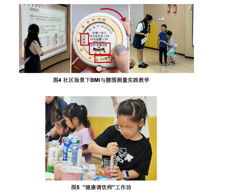 基于在校内实施的成功经验与优化后的工具包资源,通过与社区部门合作,进一步开展面向儿童青少年及其家庭的社区场景下体重管理科普活动创新实践。社区活动围绕“认识身体指标-解读食品标签-自主健康选择”的主线,设计了科学测量与身体认知、情景剧场与膳食选择、互动游戏与知识转化、实践体验与技能培养四大活动模块。活动不仅让儿童青少年在趣味体验中掌握了健康知识与技能,也有效带动了家庭共同参与,初步构建起“学校驱动、家庭参与、社区支撑”三位一体的学生体重管理支持网络,为实现健康行为的可持续改变提供了可复制、可推广的实践范本。