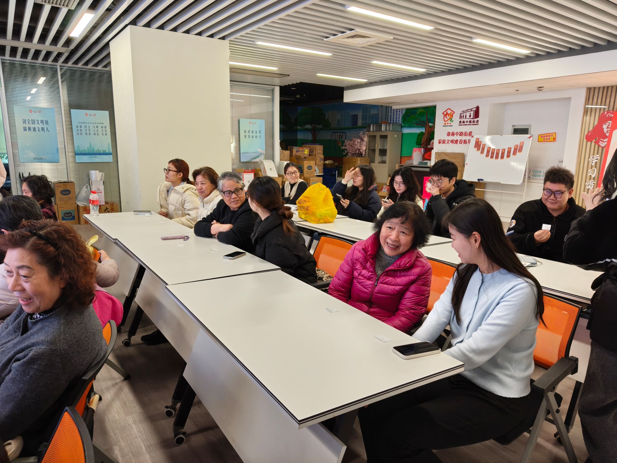 现场按照“一名社区老人搭配一名学生党员”的原则随机结对,共组成10支活动小组。各组成员就近就座、亲切交流,在轻松融洽的沟通中增进了解、拉近距离。老年居民的亲切话语与学生党员的真诚笑脸,营造了温馨和睦的活动氛围,为后续环节顺利推进筑牢情感基础。