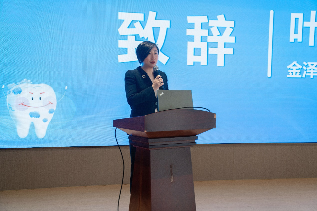 启动仪式上,叶丽君镇长向远道而来的交大口腔专家团队致以热烈欢迎和衷心感谢,她表示金泽镇始终将群众健康保障放在民生工作突出位置,此次院地携手落地“久蔚”诊室公益项目、开展惠民行动,既为当地百姓送来了实实在在的健康福利,也为金泽基层医疗提质升级搭建了优质平台,希望以本次活动为契机持续深化合作,推动全镇口腔健康水平稳步提升。徐袁瑾书记向金泽镇党委、政府的大力支持与当地群众的热情参与表示感谢,结合国家“三减三健”全民健康要求与世界口腔健康日主题,阐释了健康口腔对全民健康的核心意义,介绍了该项目以邱蔚六院士、张志愿院士“关心下一代口腔健康”理念为核心,依托“邱蔚六工作室”深耕口腔公益的初心,希望通过系列服务帮助群众破除口腔健康认知误区,养成科学护牙的良好习惯。
