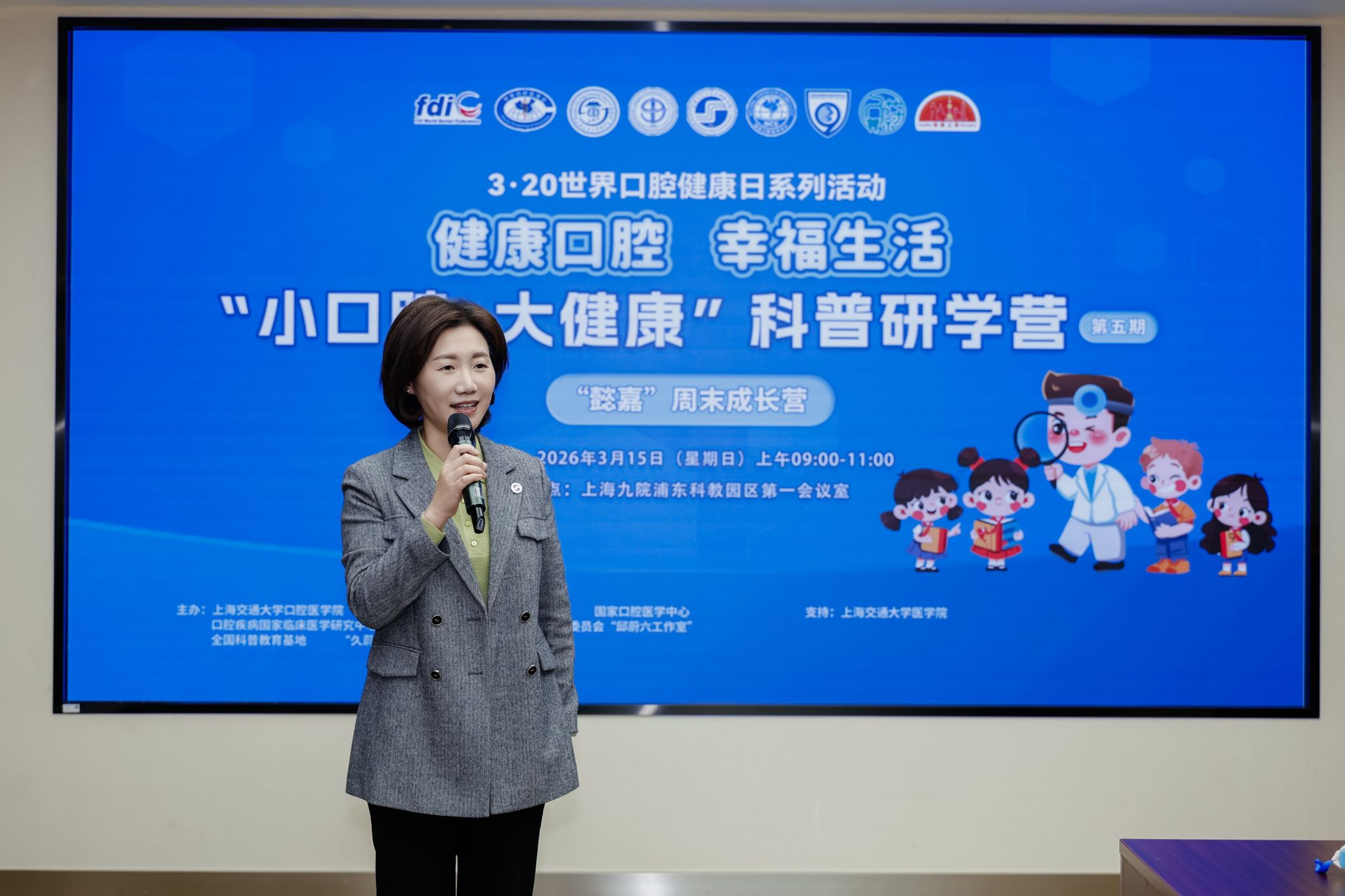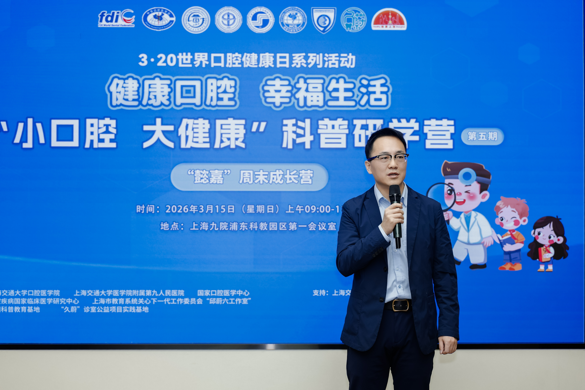 四载深耕科普路,五期践诺护齿行。3月15日上午,第五期“小口腔 大健康”科普研学营暨“懿嘉”周末成长营活动,在上海交通大学医学院附属第九人民医院浦东科教园区顺利启幕。作为标杆性口腔科普IP,该系列至今已成功落地五期高质量活动。本次由上海交通大学医学院、上海交通大学医学院附属第九人民医院、上海交通大学口腔医学院、国家口腔医学中心、口腔疾病国家临床医学研究中心/全国科普教育基地、上海市教育系统关心下一代工作委员会“邱蔚六工作室”、“久蔚”诊室公益项目实践基地共同主办,为上海交通大学附属中学浦东实验学校和上海交通大学医学院教职工家庭的同学们打造了一场兼具专业性、趣味性与成长性的口腔医学启蒙之旅。口腔医学院党委书记徐袁瑾,交大医学院基础教育合作办公室主任施瑾欢,口腔医学院副院长张文杰及多位常驻研学营的口腔专家出席活动,活动由张文杰副院长主持。