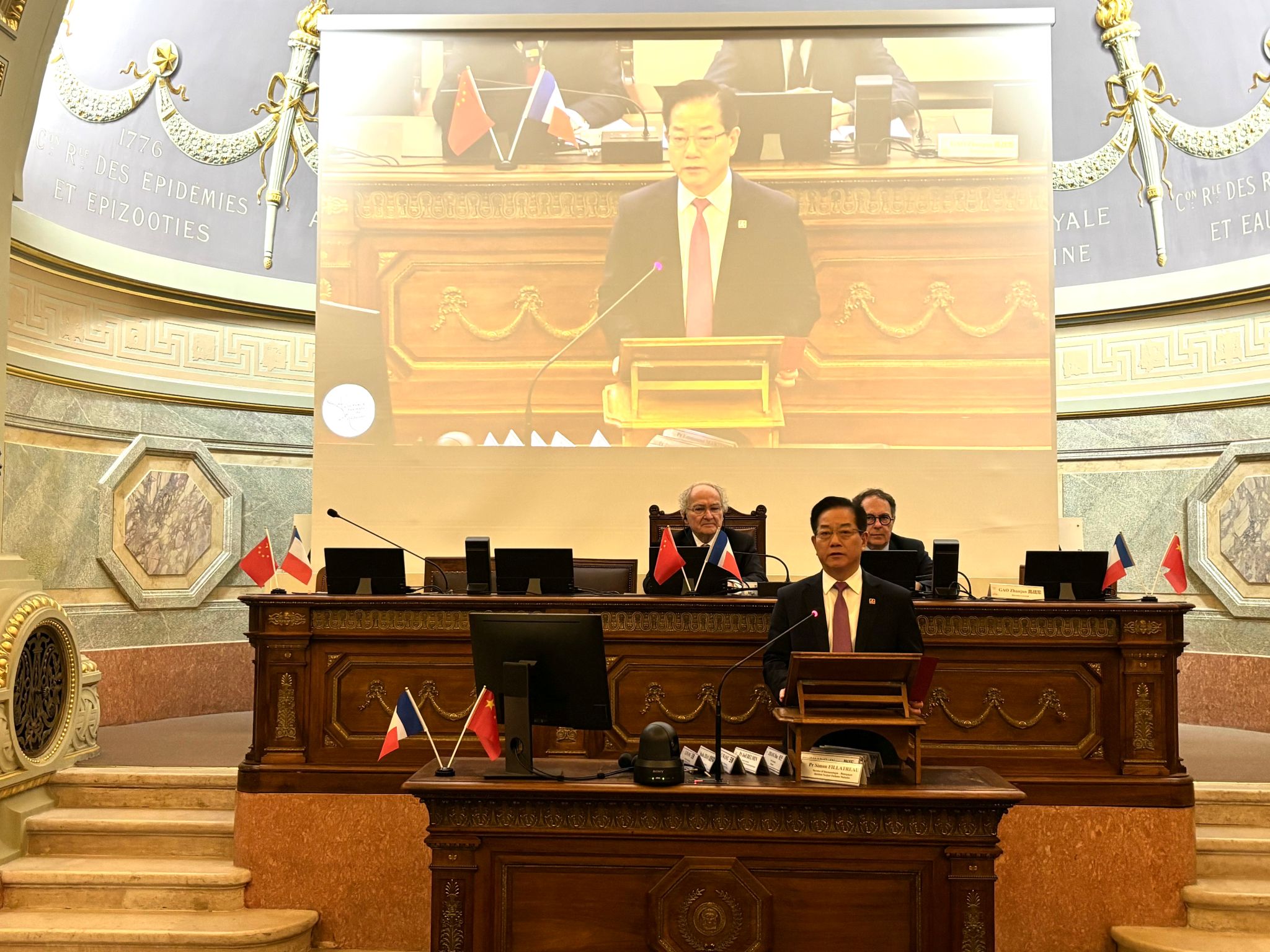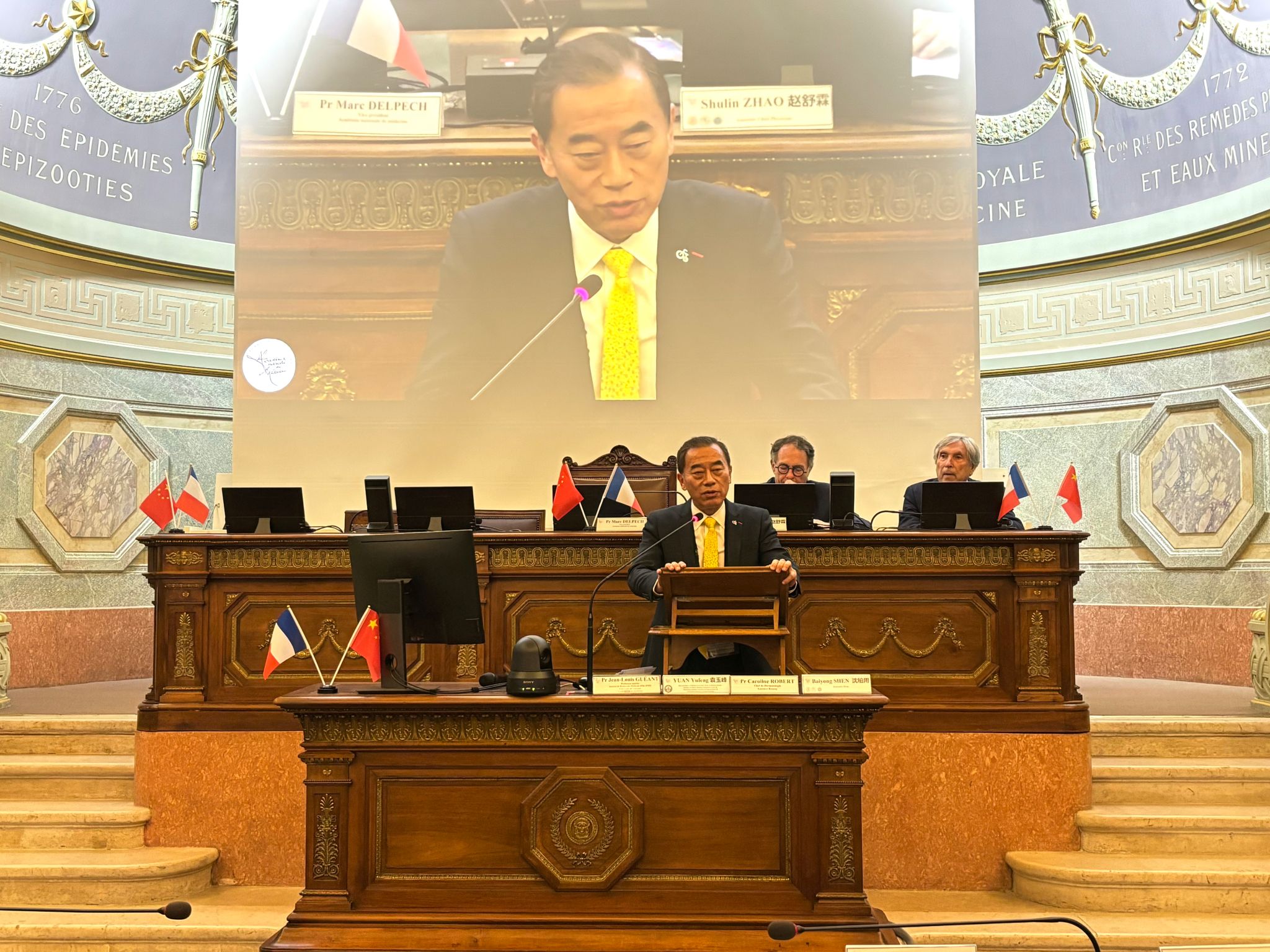 当地时间2026年4月16日,由中国工程院、中国医学科学院、上海交通大学与法国国家医学科学院共同主办,上海交通大学医学院、上海交通大学医学院中法联合医学院、上海交通大学医学院附属瑞金医院承办的第四届中法转化医学及精准诊治国际研讨会在法国巴黎法国国家医学科学院隆重举行。中法两国顶尖医学专家、学者齐聚一堂,围绕转化医学与精准诊治前沿议题展开深度交流,共话医学创新,共促合作发展。