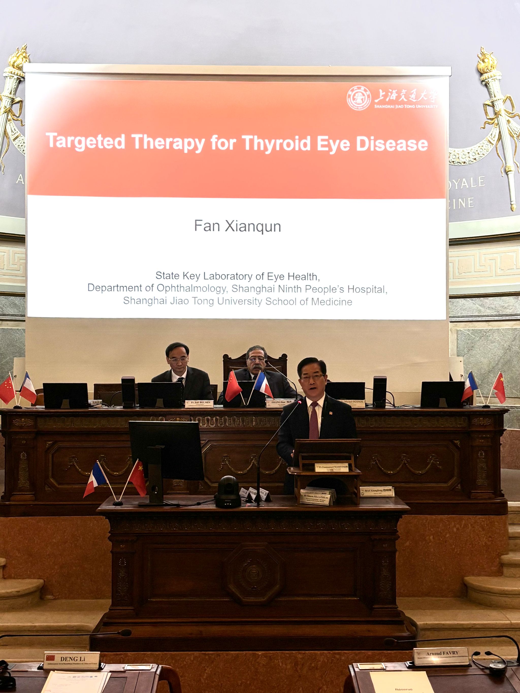 其中,范先群院士在感官障碍及老龄疾病环节,分享了甲状腺眼病的靶向治疗相关研究成果;附属上海儿童医学中心党委书记、附属第九人民医院眼科副主任周慧芳教授同场带来眼眶手术机器人研究进展,为眼科疾病诊疗创新提供思路;陈赛娟院士在生物工程和血液学环节,围绕“探索血液疾病治愈之路:细胞和基因治疗”作专题报告,助力血液疾病诊疗突破;附属瑞金医院血液科王黎教授担任生物工程和血液学、移植及免疫耐受两大环节的主持人,引导专家交流探讨、凝聚学术共识;沈柏用教授在代谢疾病和肿瘤环节,分享了提高胰腺癌长期生存的相关研究,附属瑞金医院胰腺外科赵舒霖医生与法方专家共同主持代谢疾病和肿瘤环节,推动中法专家在相关领域的深度交流;附属瑞金医院泌尿外科周佩军教授在移植及免疫耐受环节,分享了中国异种移植的实践经验,为跨境移植领域合作提供参考。与会专家一致认为,中法在医学基础研究、临床转化、技术创新上优势互补,多学科交叉与跨境合作是推动精准医学发展、攻克重大疾病的关键路径。