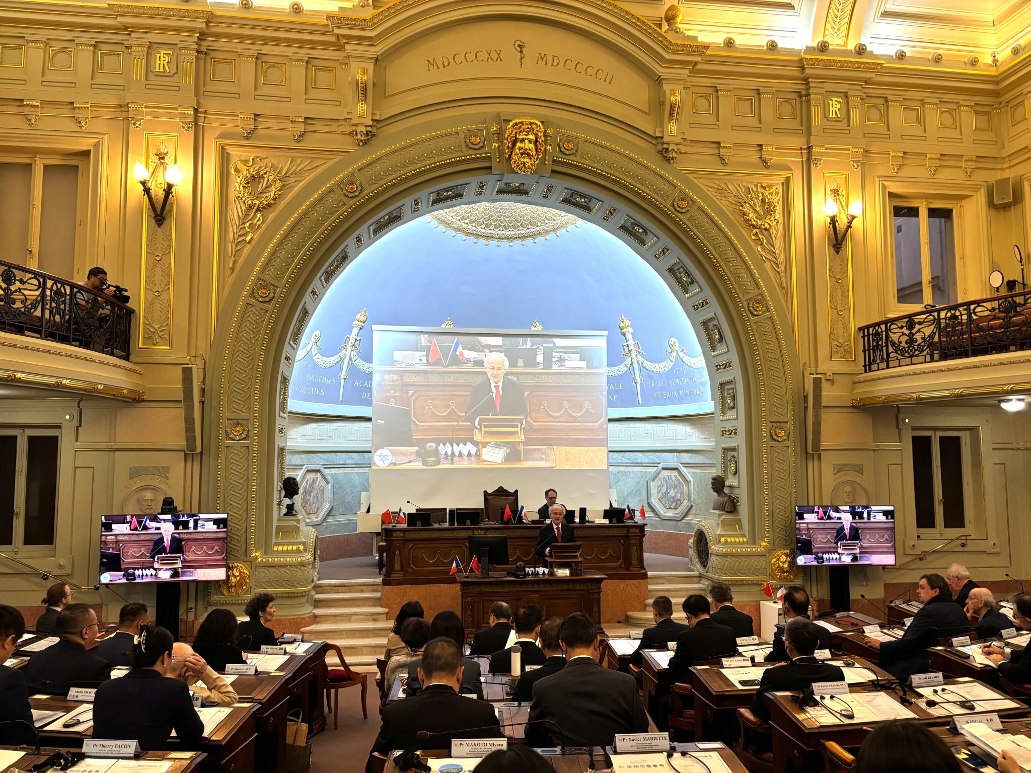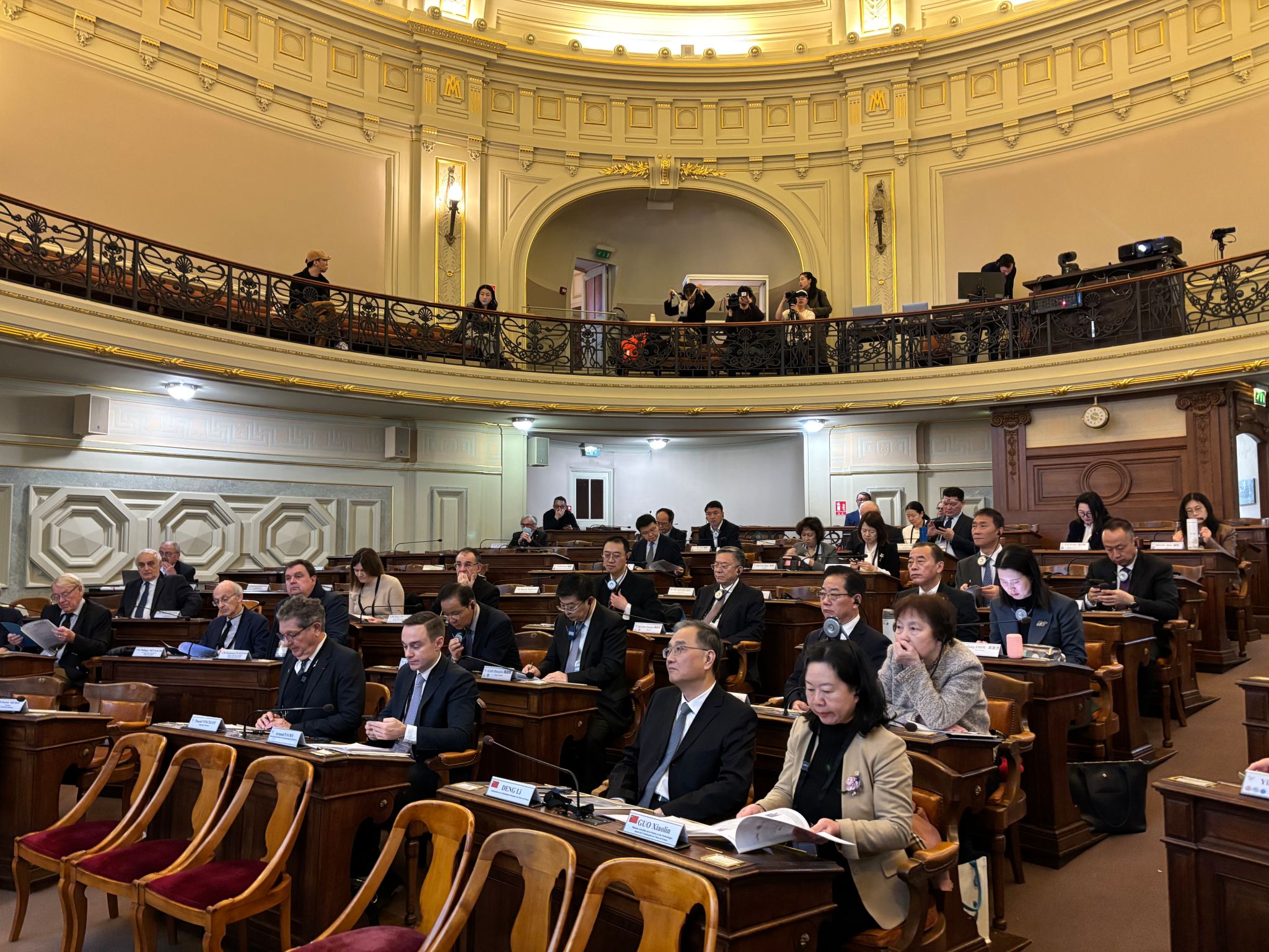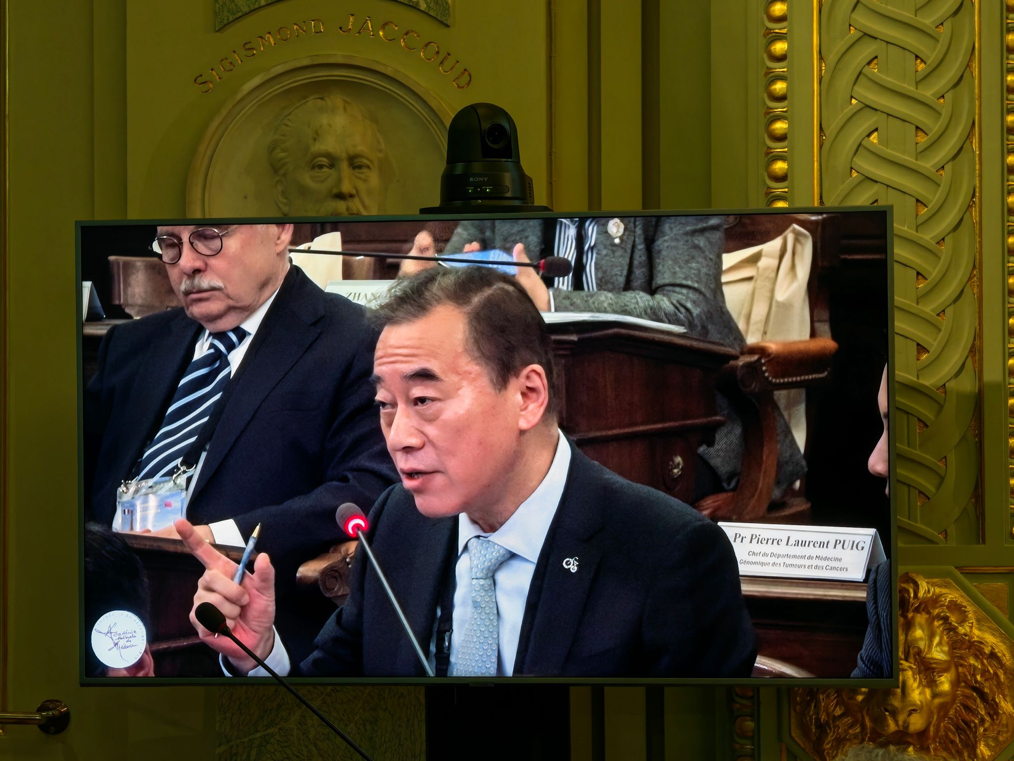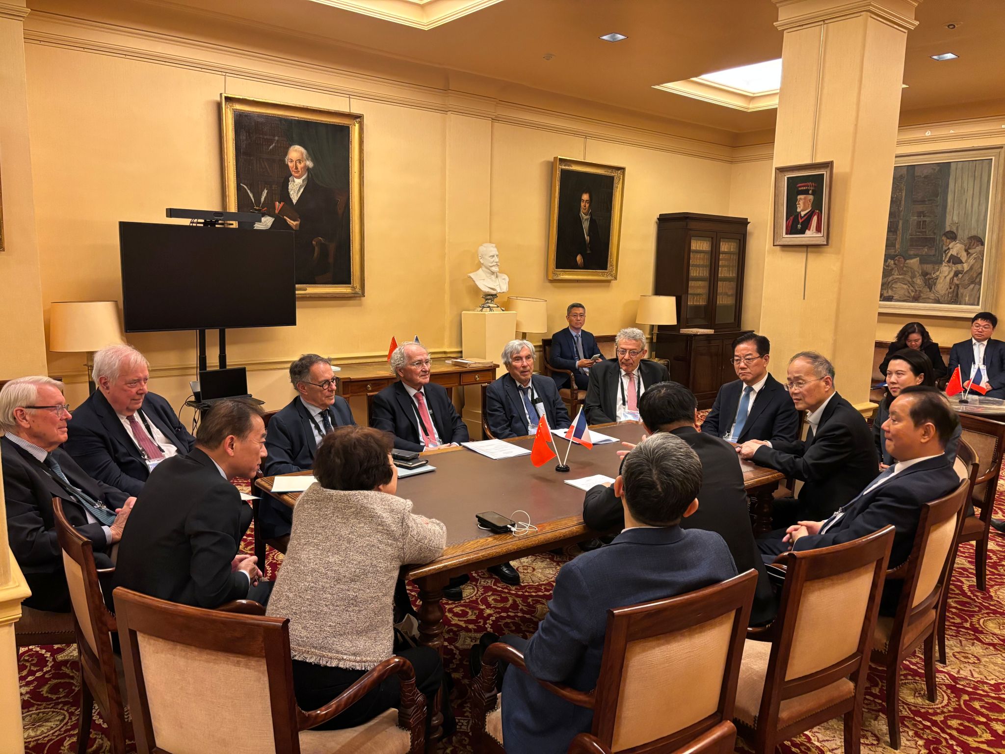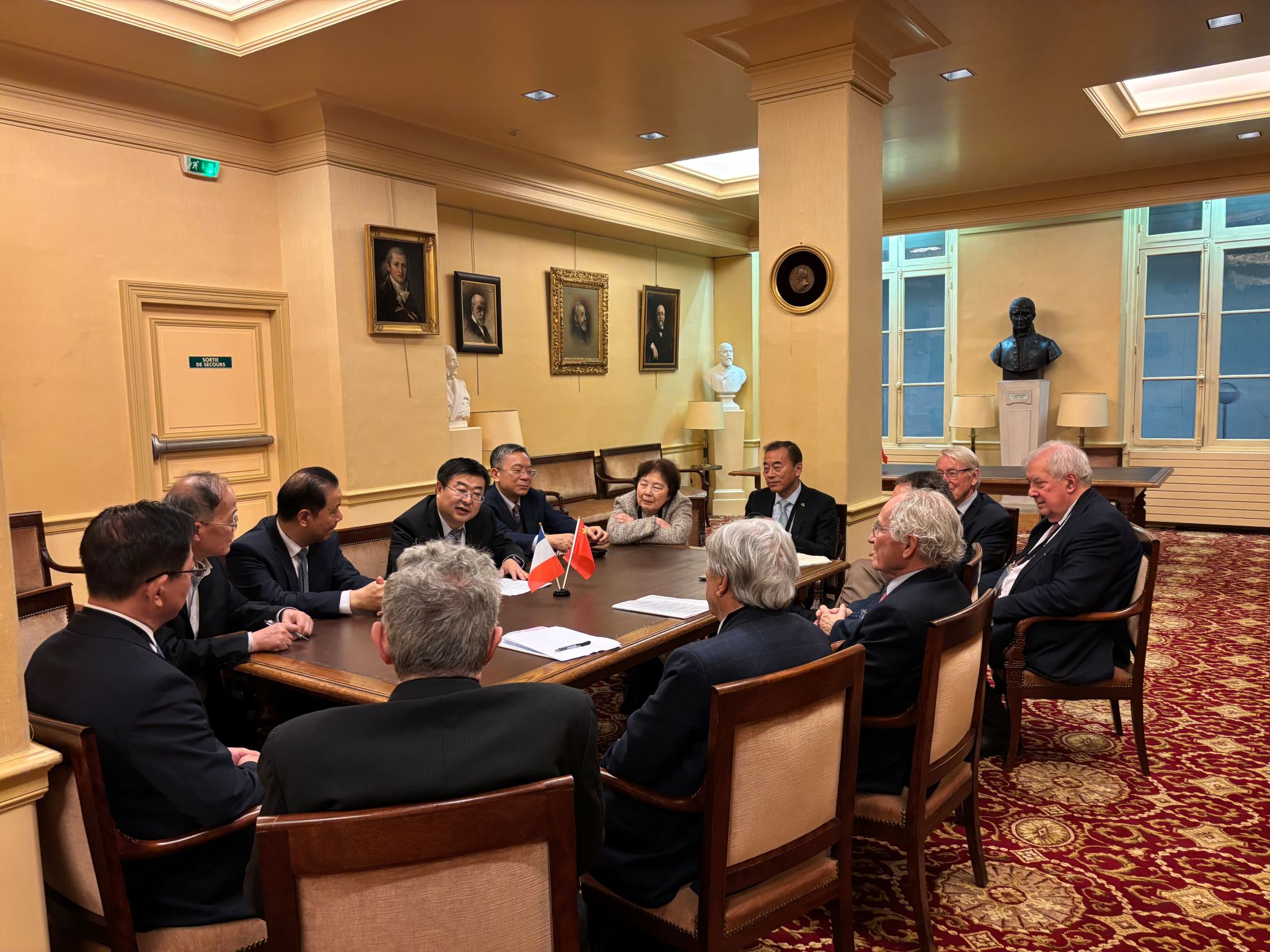 此外,当地时间4月15日,法国国家医学科学院先后召开两场中法医学合作工作讨论会:首场联合上海交大医学院等四所中方院校及巴黎公立医院集团代表,围绕团队建设、校友合作、合作方向及资金保障等议题沟通;次场与上海交大医学院、中国工程院团队,聚焦转化医学与精准诊治,磋商科研、人才、平台共建等长期合作。两场讨论会务实高效、重点突出,进一步夯实了中法医学合作的基础,为后续各项合作举措的落地见效奠定了坚实基础。