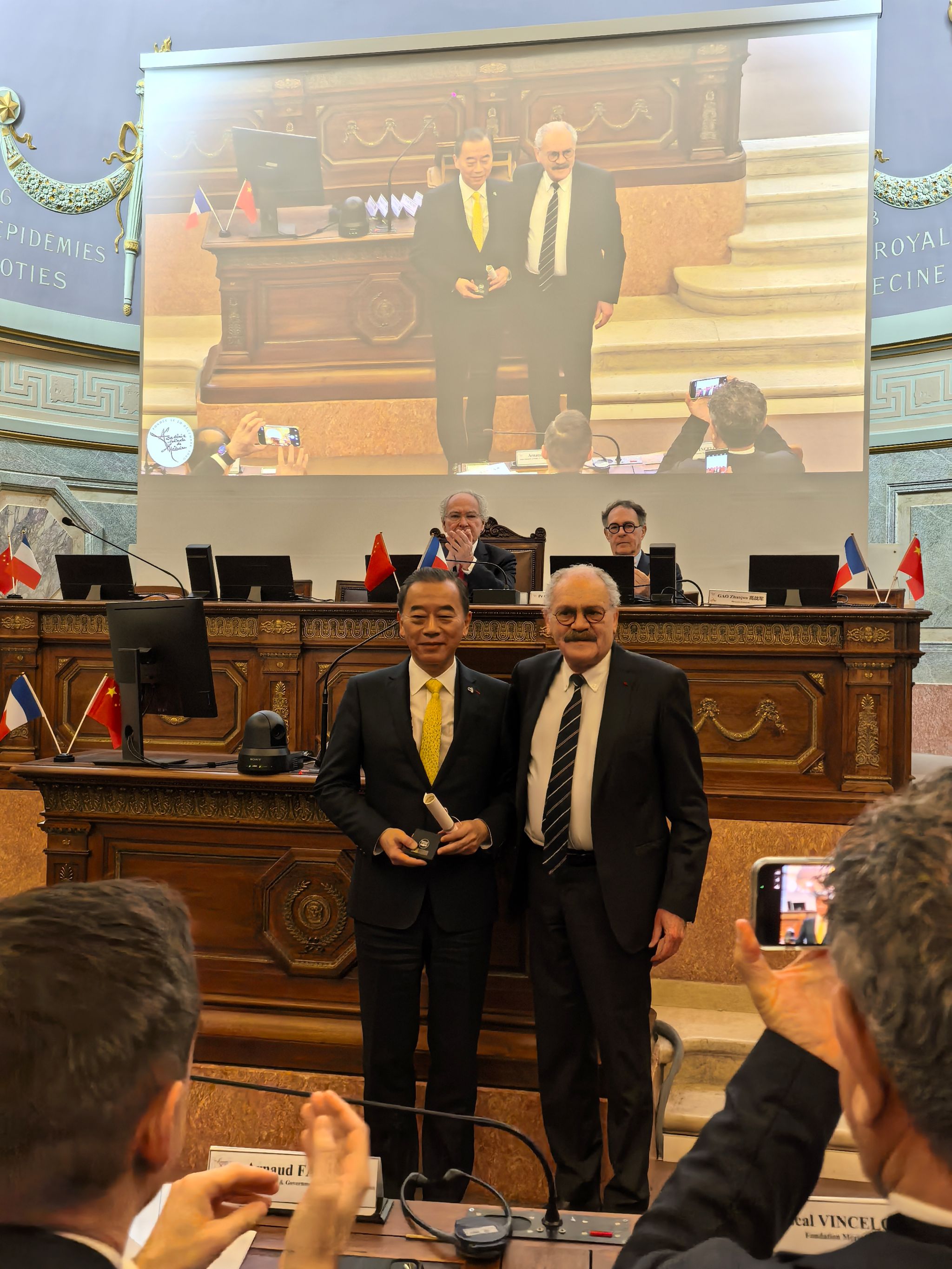 大会中方主席、四大慢病重大专项技术总师、中国科学院院士陈竺线上参加会议,中国驻法国大使邓励,中国工程院三局局长高战军,上海交通大学医学人工智能研究院院长、中国工程院院士范先群,转化医学国家重大科技基础设施(上海)首席科学家、中国工程院院士陈赛娟,法国国家医学科学院外籍院士、上海交通大学医学院中法联合医学院执行院长沈柏用等中外领导以及中法两国生命科学、临床医学及转化医学领域著名院士和专家学者等亲临法国巴黎会议现场。