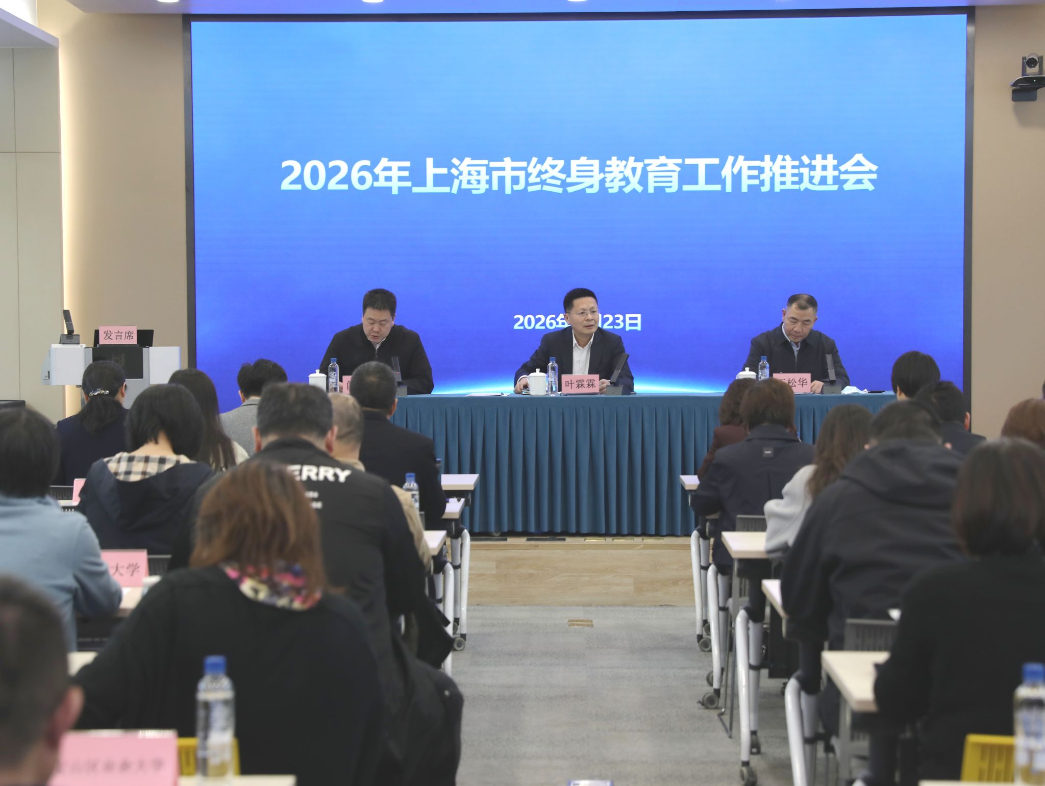 4月23日,2026年上海市终身教育工作推进会召开。上海市教育委员会副主任叶霖霖出席会议并讲话。上海市教委相关处室、各区教育局、各级老年教育机构及高校老年大学负责人参会。会议由上海市教委终身教育处闫鹏涛主持。