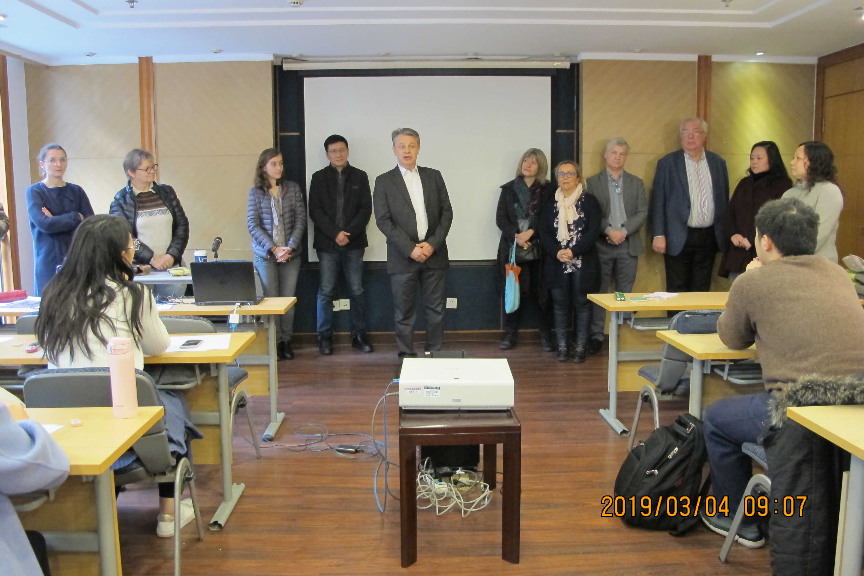 3月5日,中法联合医学院成立后“首届上海交通大学医学院中法联合医学院宣讲会”在医学院懿德楼报告厅隆重举行,法国政府协调员Patrick MERTENS教授和Marc DELPECH教授、法国驻沪总领事馆科技处Sarah MAESEN、法国各合作院校的代表、医学院和附属瑞金医院相关部处的领导以及全体法文班学生悉数出席。