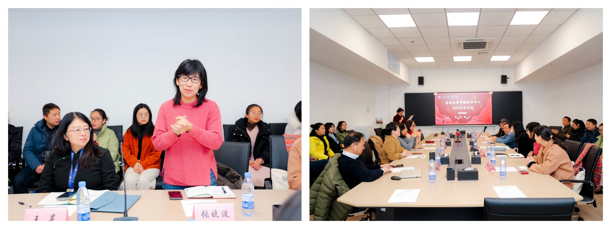 2026年1月23日上午,基础医学实验教学中心2025年度总结交流会在浦东校区东7楼515会议室举行,基础医学院党委副书记张晓波、副院长王昊出席会议并讲话,实验中心全体教职工、教学督导参加会议,特邀嘉宾上海交通大学生命科学与技术国家级实验教学示范中心副主任张萍做专题报告。会议由中心党支部书记许伟榕主持。