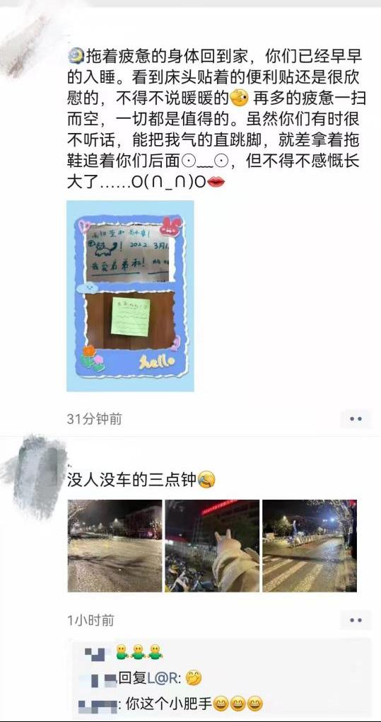 协助社区工作时长每天平均12小时,从早上8点至晚上10点到凌晨3点不等,社区工作人员实行换班制,而小分队无人可替。井喷式的采样让“健康云”APP多次罢工,采样人员全部通过人工手写登记。为保证小区全部住户当天核酸检测完成,对老弱等特殊人员需进行上门采样,其中历经各种变故,唯一不变的是各位队员都坚守到最后一位居民做完检测才可离场。