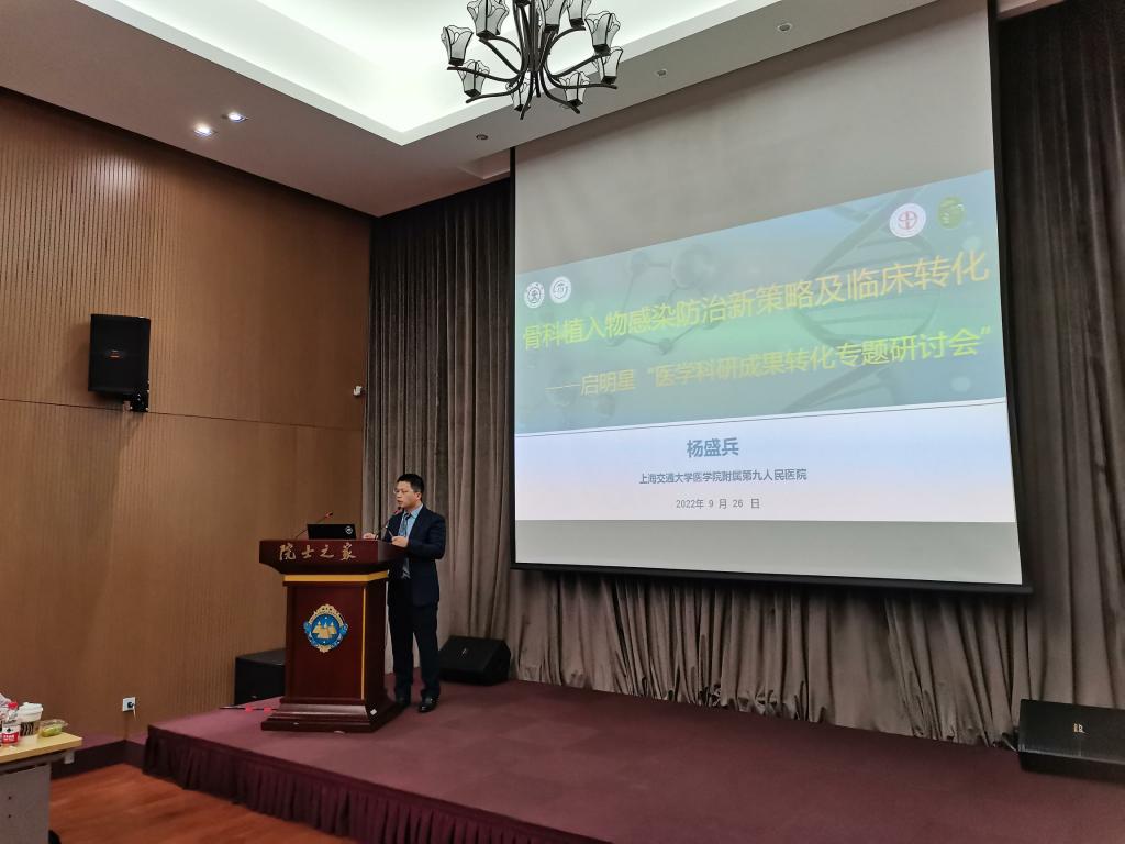 由于研究具有重要的临床意义和转化潜力,该团队杨盛兵副研究员受上海市科委人才处和上海市科创启明星协会邀请在上海科学会堂内的“院士之家”举行的“首届启明星医疗成果转化专题论坛”做邀请报告,会上得到科委人才处和启明星协会领导的指导和牵线,并与企业进行了深入的交流。团队开发的抗菌型植入物得到一同参会的上海昊丰医疗科技有限公司刘春杰董事长的认可,双方目前正进行相关产品的联合研发。