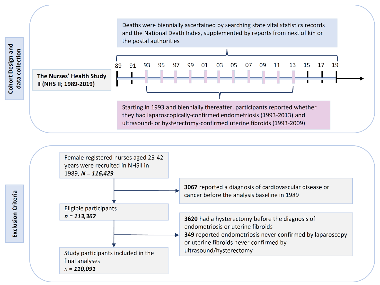 子宫内膜异位症(Endometriosis)是一种女性生殖系统的慢性疾病,其特征是子宫内膜组织在子宫以外的部位生长。子宫肌瘤(Uterine fibroids)是由子宫平滑肌细胞增生引起,其中含少量纤维结缔组织,是一种临床上常见的良性妇科肿瘤。据估算,全球女性子宫内膜异位症和子宫肌瘤患病率分别高达10%和15-30%,但其远期健康效应仍不明确。近日,公共卫生学院汪一心研究员与美国哈佛大学、密西根州立大学、埃默里大学等国际团队合作,利用随访了30余年且纵向覆盖全生命周期的大型前瞻性女性队列,发现经腹腔镜确诊的子宫内膜异位症和经超声或子宫切除术确诊的子宫肌瘤均会增加远期因肿瘤过早死亡的风险,尤其是因妇科肿瘤早亡的风险。此外,子宫内膜异位症还会增加非癌症疾病早亡的风险,如因呼吸系统和神经系统疾病导致的早亡。此外,该研究也发现同时患有子宫内膜异位症和子宫肌瘤还会增加因心血管疾病早亡的风险。上述研究成果于2024年11月20日在线发表在四大医学期刊之一的British Medical Journal 上(Wang YX et al., BMJ. 2024;387:e078797)。