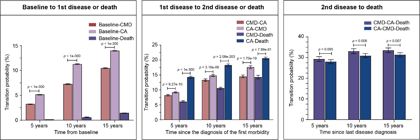 随着人口老龄化进程加速,多种慢性疾病同时或相继发生(multimorbidity)越来越普遍,共病的预防和管理已成为重要的健康挑战。与仅患单一疾病相比,多病共存人群往往面临更高的死亡风险和更复杂的临床管理问题。在众多慢性疾病中,心血管代谢疾病(包括心血管疾病和2型糖尿病)与癌症是造成死亡的两类主要疾病,且二者在发生发展过程中可能相互影响,并共享衰老、肥胖和慢性炎症等风险因素。然而,关于这两类疾病如何在时间维度上相互演变、不同发病顺序是否影响预后,以及是否能够提前识别共病高风险人群,仍缺乏系统研究。