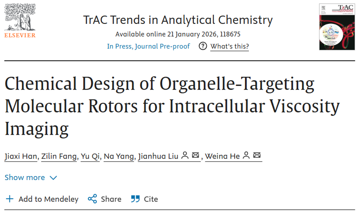 近日,在基础医学院原创探索类青年支持项目和大学生创新训练计划项目支持下,何伟娜和刘坚华副研究员指导的医学院本科生在国际顶级分析化学期刊Trends in Analytical Chemistry(TrAC)(中科院一区Top期刊)在线发表题为Chemical Design of Organelle-Targeting Molecular Rotors for Intracellular Viscosity Imaging的综述文章。