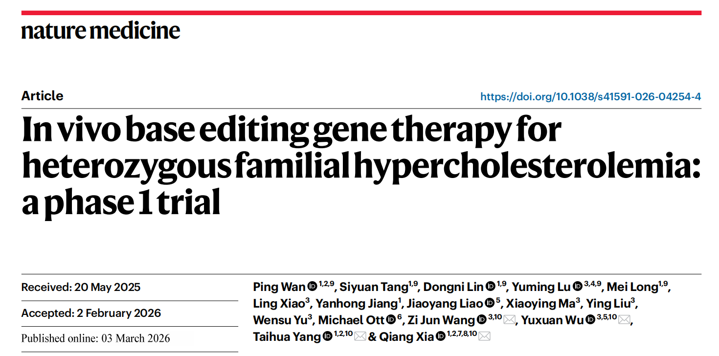 近日,上海交通大学医学院附属仁济医院发表重磅科研成果,中国工程院院士、附属仁济医院院长夏强领衔的团队,在国际顶尖学术期刊《自然・医学》(Nature Medicine)发表全球首个运用肝脏靶向体内碱基编辑技术治疗杂合子家族性高胆固醇血症的Ⅰ期临床试验结果。这一研究首次在人体中证实了该基因治疗手段的安全性和有效性,为这一遗传代谢性肝病患者摆脱终身用药负担带来全新希望。