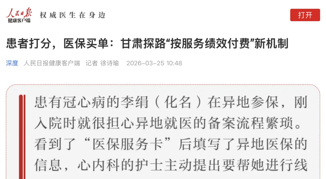 这是甘肃省医保局“按服务绩效付费”的一种新探索。当患者的主观感受和各个环节的满意度被纳入到医保服务监测系统,患者、医疗机构和医保管理部门之间架起了新的桥梁,也让医院管理者重新思考“服务”的意义。