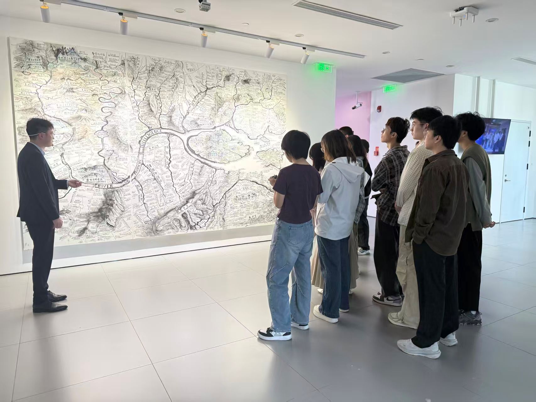 除了展示内容,同学们还在互动区域与AI“面对面”交流。大家挑战了与AI下五子棋的项目,体验了AI智能护眼灯等可落地的日常产品——这些智能设备如今已可以在主流购物平台上购买。在AI影像体验区,同学们尝试了AI换脸生成功能,收获了趣味十足的“奥特曼版”照片,笑声不断。在面部表情捕捉装置前,AI系统根据笑容的幅度生成动态的花朵图像——笑得越灿烂,繁花开越盛。展区的最后,同学们驻足欣赏AI生成的手绘城市地图,画面流畅自然,令人惊叹AI在艺术创作领域的独特表现力。