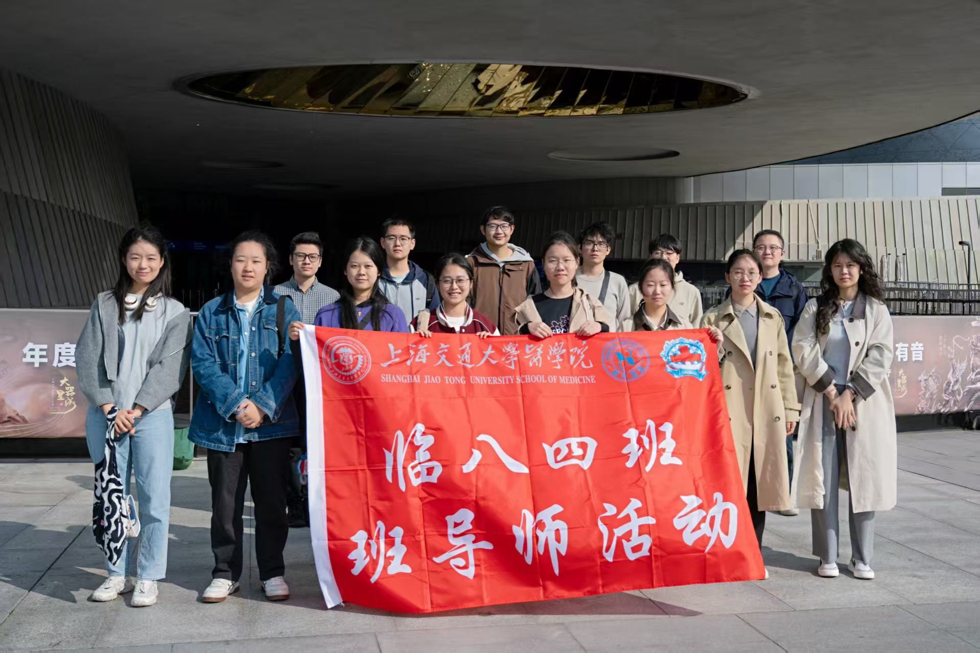 2384同学与班导师包润发老师在场馆外的合影
