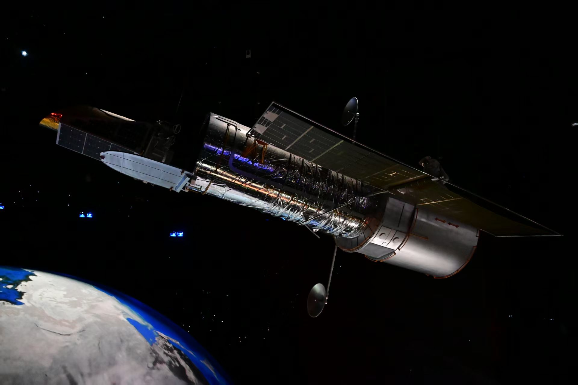 “曾经以为是世界的中心,如今只是宇宙的一隅;曾经以为是唯一的太阳。不过是亿万恒星的一颗。”走进“家园”展区,映入眼帘的便是那颗巨大的地球,蔚蓝色的星球在黑色的宇宙背景中缓缓转动,表面的云层与洋流清晰可见——这便是我们共同的美丽家园。抬眼望向地球背后折射出各色光芒的星体,神秘的银河系缓缓陈列在我们面前。事实上,地球之于银河系,就像是人类之于世界,细胞之于人体一般,每一颗天体的规律运动构成了广阔的宇宙,每一个个体的勤恳工作维护了社会的稳定,每一个细胞的相互协调维持了人体的稳态。如今的我们学习医学,也同天文学家探索宇宙一样,是要去探求这些现象背后的规律,我们也应该像他们一样秉持着严谨的治学理念,向内探索人体的奥秘。
