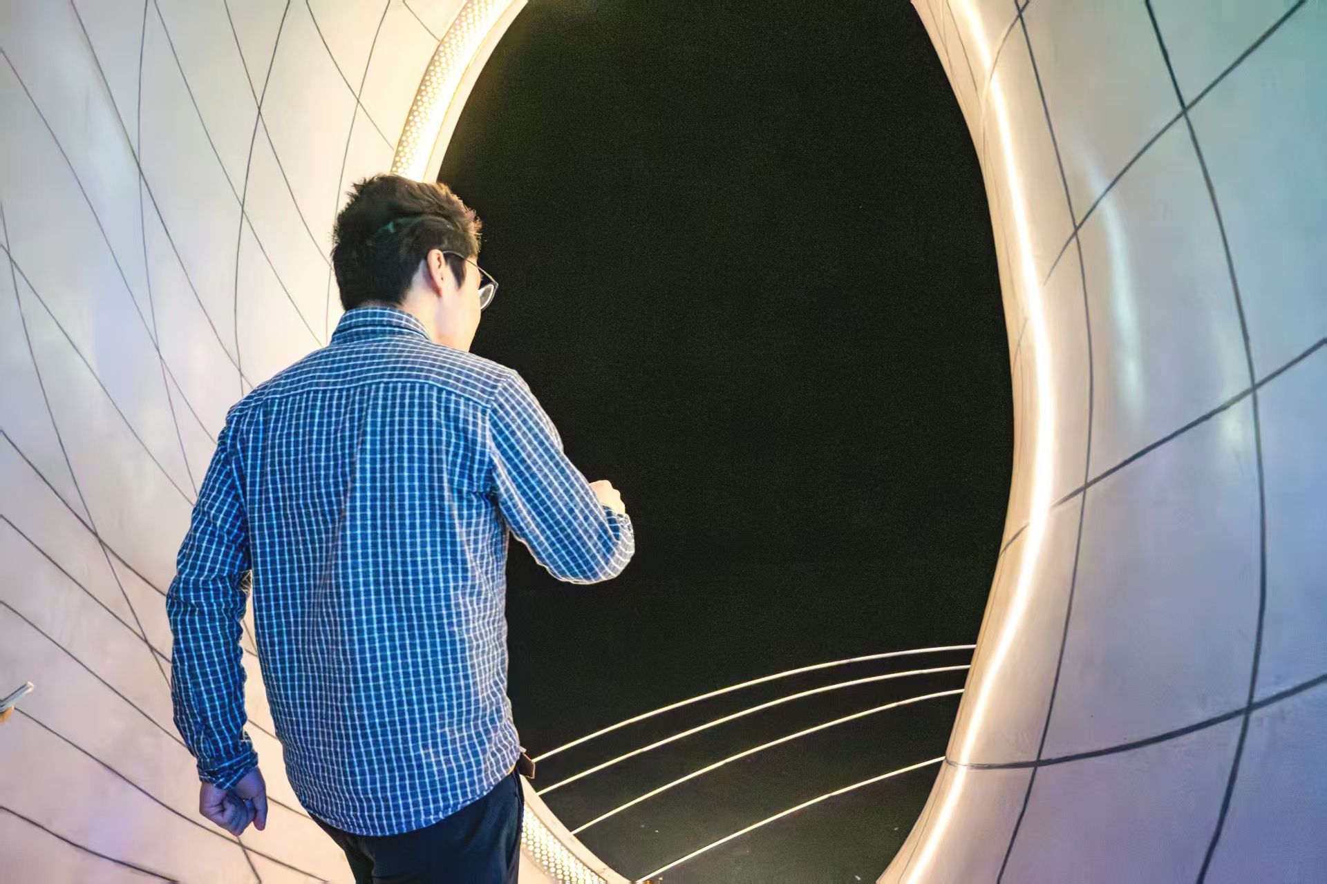 “什么是宇宙?时间与空间浑然一体,包罗万象,物质与能量徜徉其中,变化万千。”“宇宙”展区从时空、引力、光、元素、生命五个维度展现了宇宙运行的规律,同学们走过“星际穿越”的长廊,伸手便能看见无数光点随指尖流动,仿佛置身于真实的星际空间,宇宙的奇妙不言而喻。在这里,我们切身感受到了宇宙的宏大,人类的文明仅在这方宇宙中书写下几千年的沧海一粟,却用其独特的智慧跨越百亿光年的尺度,不断追求着宇宙的真理,我们此刻所知只是宇宙的冰山一角,却凝聚着科学家们的智慧,这般追求真理、勇于探索的精神也正是我们所要学习的。