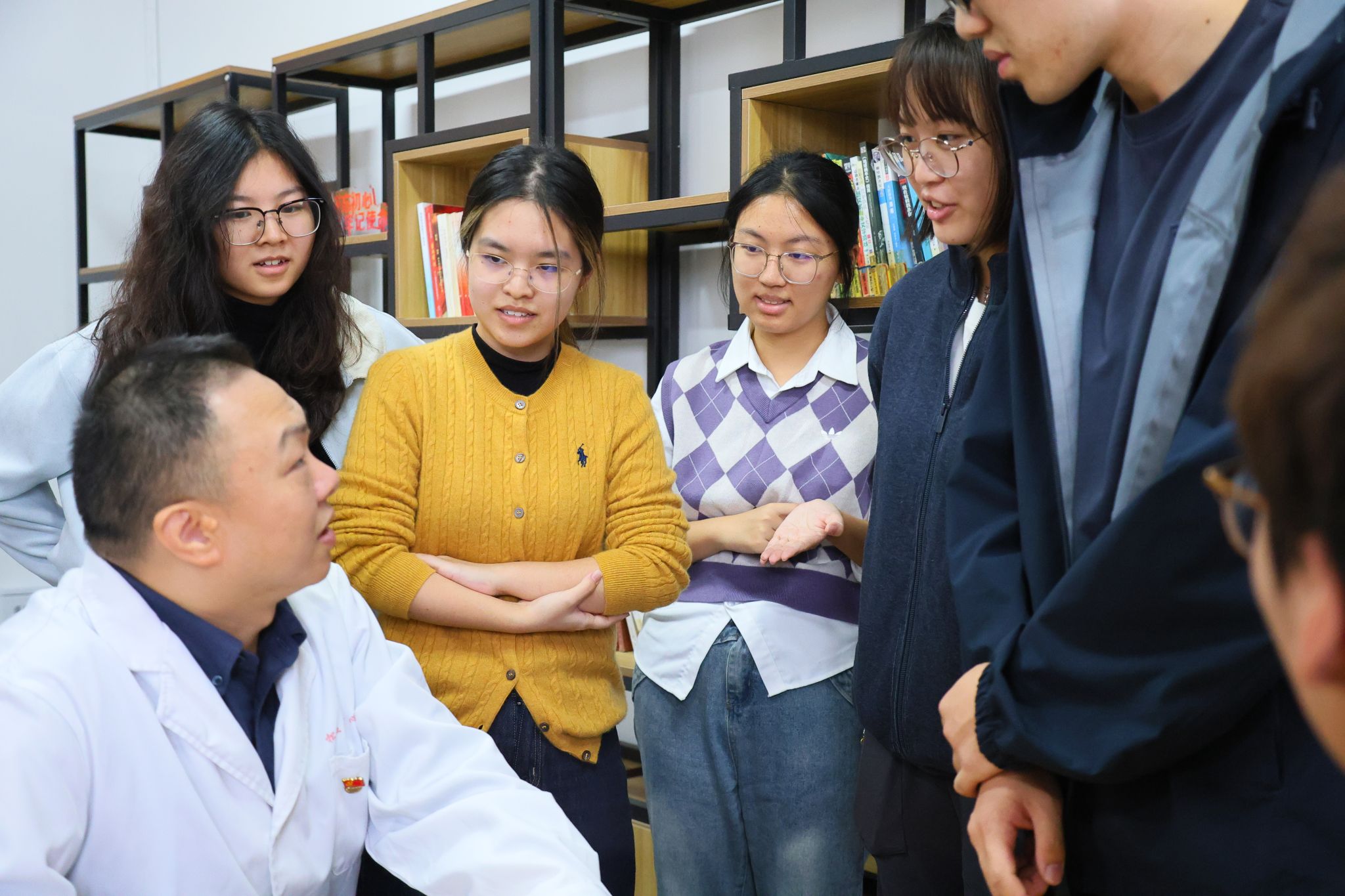 在健康宣讲环节,本科生第三党支部的学生党员代表结合医学专业知识,围绕“老年常见病预防与健康管理”开展专题宣讲,以通俗易懂的语言介绍了心脑血管疾病、骨质疏松、跌倒预防等老年健康知识,并现场演示了基本急救技能。同学们专业扎实的讲解与真诚热情的服务,展现了新时代医学生的责任担当与人文关怀。