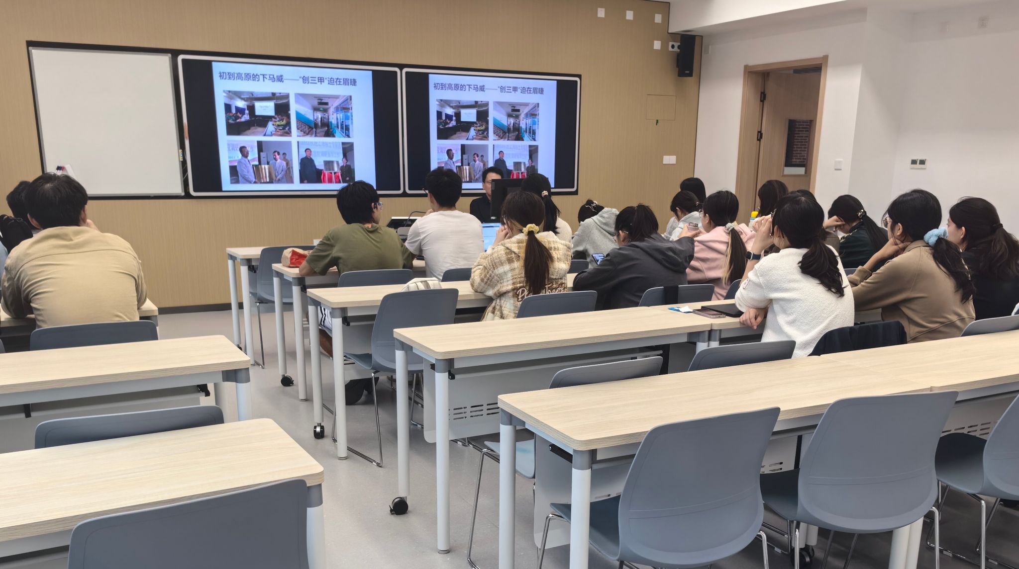 11月4日,一场关于医生援藏的分享会在上海交通大学医学院浦东校区开展, 上海交通大学医学院附属瑞金医院血液科的许彭鹏医生、医学院辅导员牟云平老师和医学2481班学生共同参与此次分享会。作为曾参与“组团式”援藏医疗队的成员,许医生以“我的援藏医疗路”为主题,结合在西藏日喀则一年多的工作与生活经历,向同学们讲述了一段关于奉献、成长与家国情怀的动人故事,并为医学生的职业规划与发展提供了宝贵的建议。