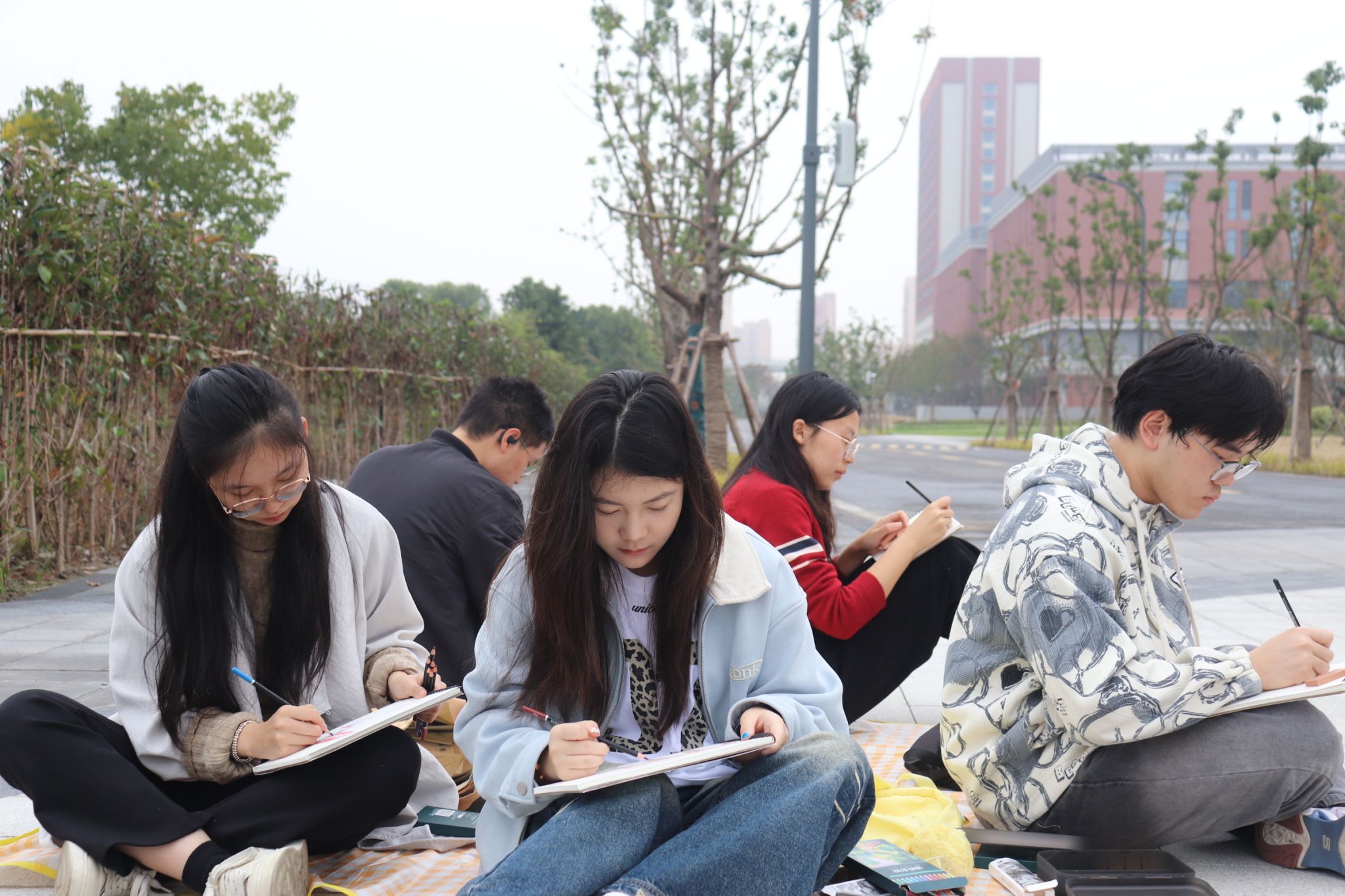 上午11时,活动转入校园实景写生环节。20名同学在专业指导下,分别于“博极医源”碑石前拱门、钟楼、图书馆草坪及医学院大门等标志性景观处执笔写生。大家将刚学到的美学理论付诸实践,在画纸上融合建筑结构的理性与自然景观的生机,绘制出属于医学生的独特校园风景。