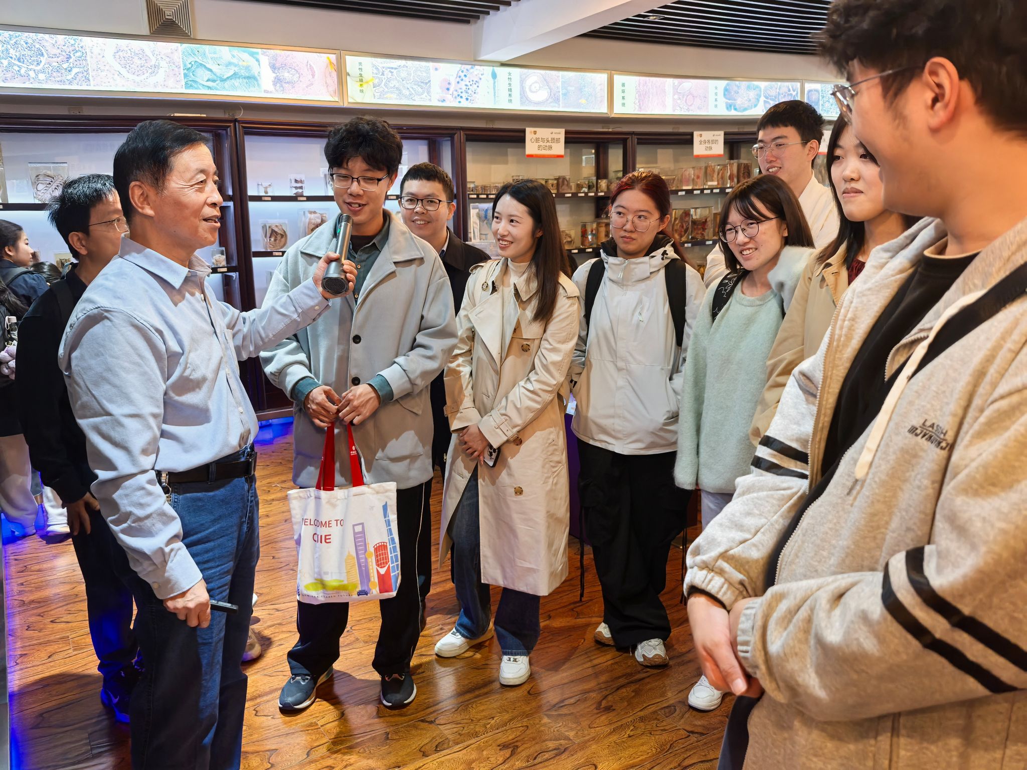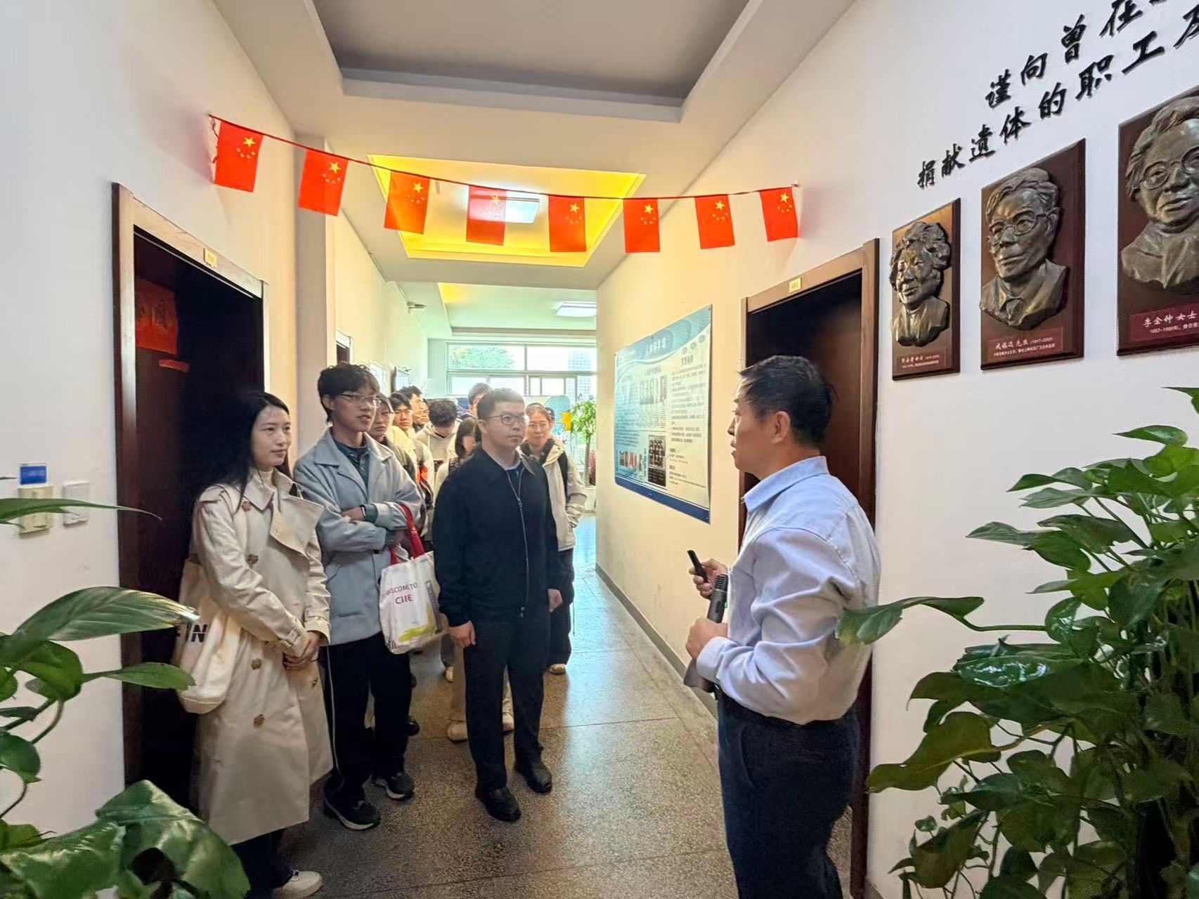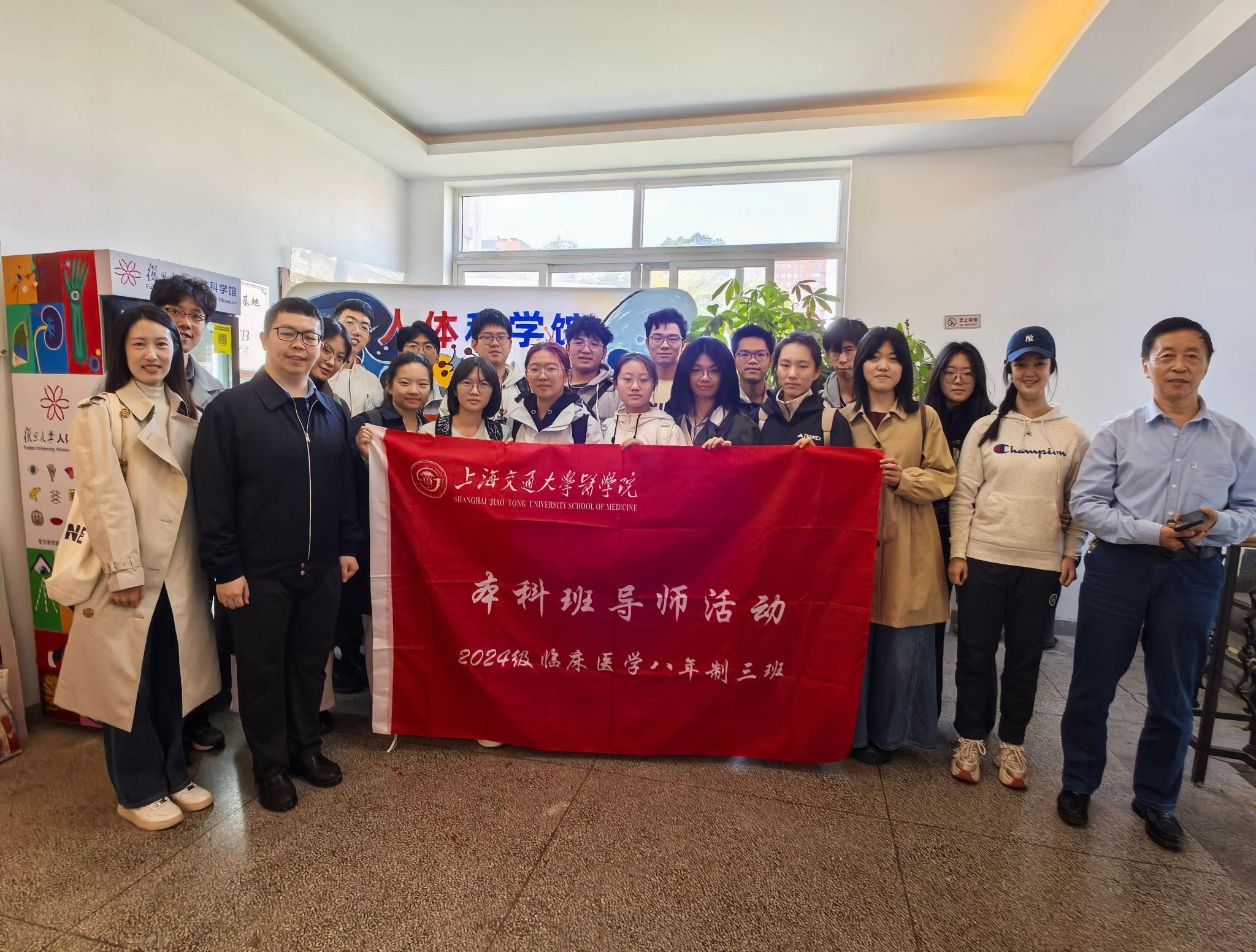 为深化基础医学知识理解,感悟医学人文精神,11月15日,上海交通大学医学院2024级临床医学八年制三班全体同学在班导师褚鹤龄老师和辅导员牟云平老师的带领下,前往复旦大学人体科学馆,成功开展了以“探秘人体奥秘,筑牢医学根基”为主题的班导师活动。本次活动旨在将系统解剖学理论知识与实体标本观察深度融合,解决“懂理论但认不清实物”的难题,是一次生动的专业教育与生命教育课。