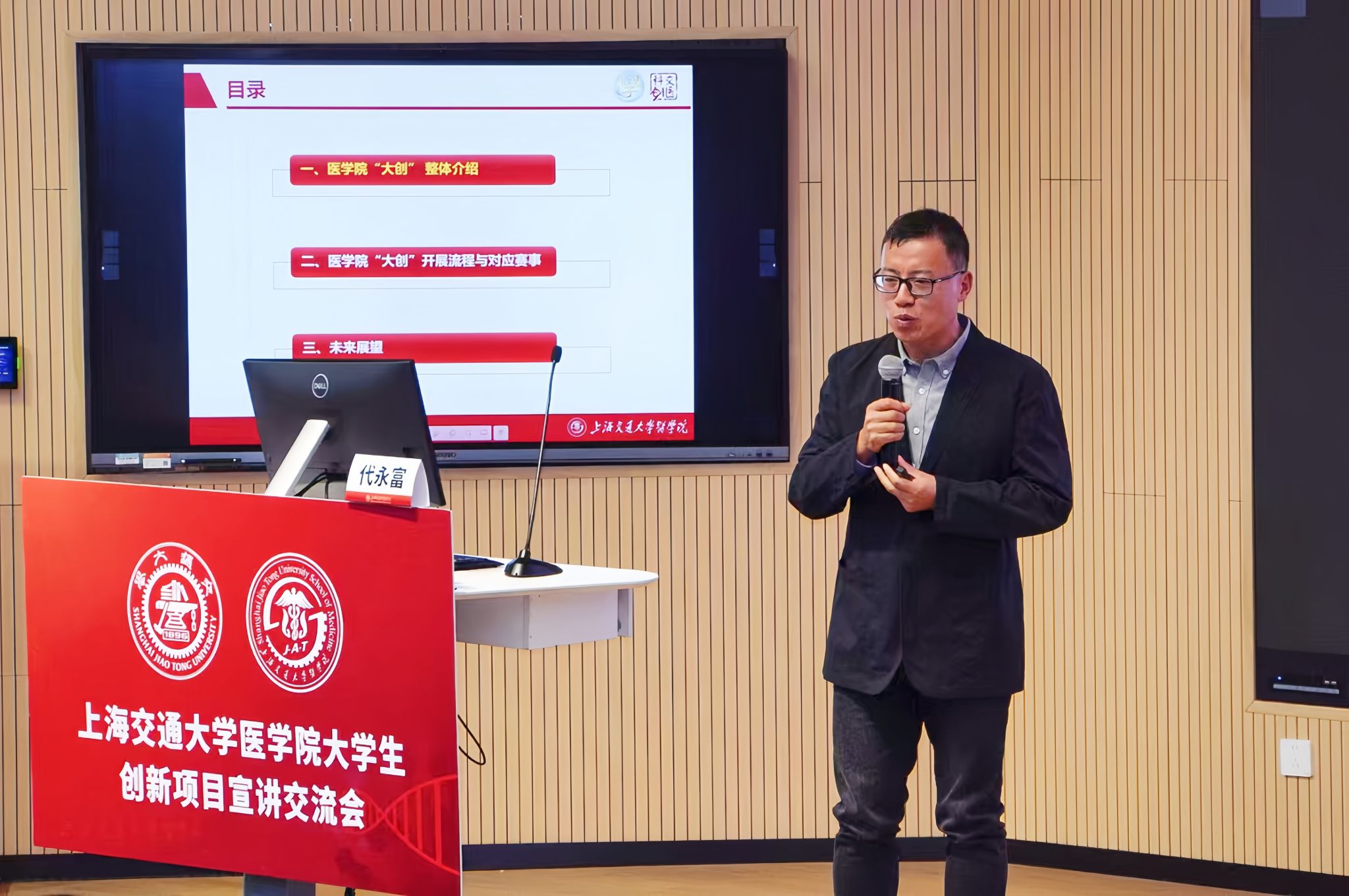本次宣讲会是医学院学指委、大学生创新训练计划工作办公室与校学生创新中心深化联动的举措之一。自2019年双方携手、在国内高校中率先将“医+X”理念引入大学生创新训练工作以来,各专业同学以此为平台,先后有545名学生(其中校本部学生152名、占28%)在医学与电子信息、计算机科学、人工智能、生物医学工程、机械工程、材料科学与工程等领域教师的指导下开展大创项目124项,相应成果取得全国大学生基础医学创新研究暨实验设计论坛铜奖、中国国际大学生创新大赛上海赛区金奖、“挑战杯”上海市大学生课外学术科技作品竞赛一等奖等荣誉,以及获得专利授权、计算机软件著作权共5项,发表中英文学术期刊论著10篇,为“新医科”“新工科”人才培养作出了积极的探索。2024年起,院-校双方进一步规划筹建学生创新中心医学院分中心,以期打造面向医学院学生“全程化、一体式”的创新培育体系,通过资源共享、专业互动,使医学院与校本部师生在创新实践方面形成更密切的协同,将“医学+X”“X+医学”复合型创新人才培养体系建设引向深入。
