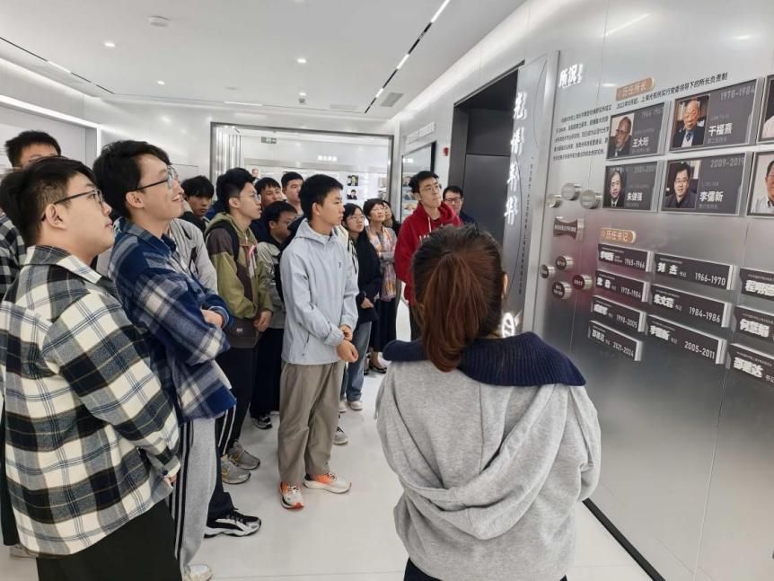 随后,师生一行前往上海光机所,开启科技探索的第二篇章。在研究所展厅,工作人员通过历史影像、实物模型、成果展板等多种形式,详细介绍了上海光机所的发展历程、核心科研方向、园区布局,以及激光技术的诞生背景与发展脉络,并重点讲述了多位院士扎根科研、攻坚克难的学术风采,让同学们对我国激光科技事业的发展根基有了全面认知。