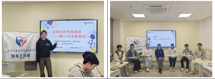 为促进医学生心理健康素养与职业生涯发展能力的全面提升,2025年11月,上海交通大学医学院医学技术学院陪青工作室精心策划并成功举办了四场主题鲜明、内容丰富的心理健康教育系列活动——《心灵解码与成长赋能——医学技术学院“小王子”成长系列活动》。该系列聚焦自我认知、压力调适、潜能激发与职业探索四大核心议题,通过多元化的工作坊与团体辅导形式,为学子们带来了一场启迪心灵、赋能未来的成长之旅。