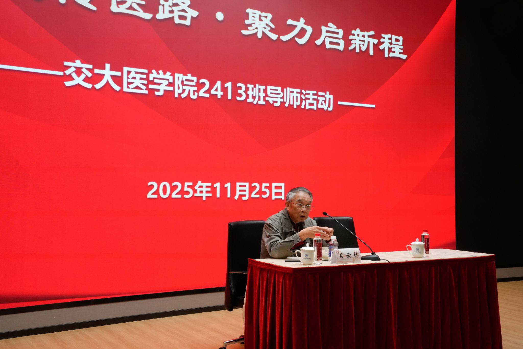 吴云林教授首先与同学分享从医几十年的感悟。他回忆在安徽巢湖抗洪救灾的经历以及在临床工作中的感悟与思考,鼓励同学们未来要注重把临床经验总结为科研结果。