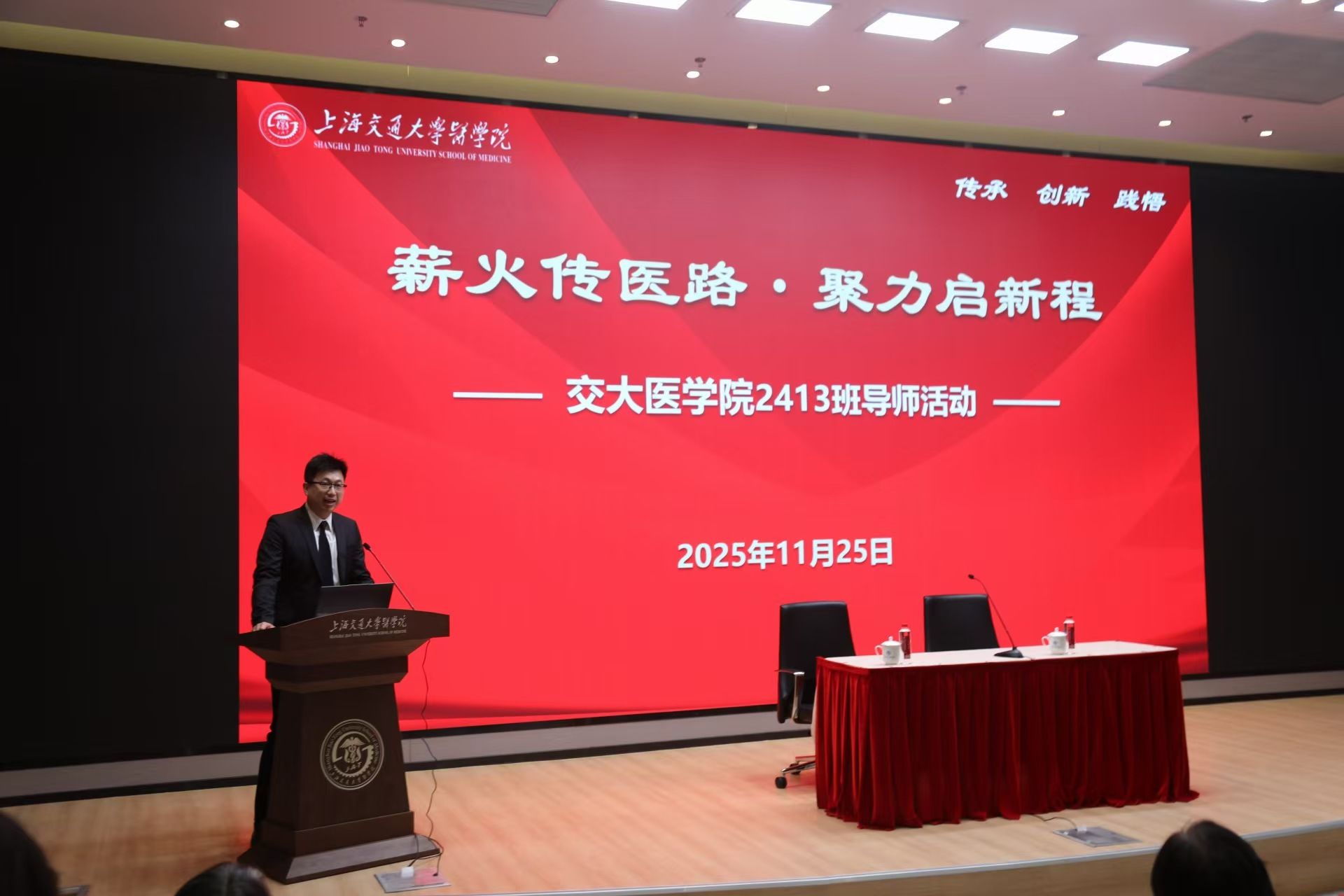 11月25日上午,2024级临五三班“薪火传医路,聚力启新程”班导师活动在医学院浦东校区彤程大讲堂顺利举行。班导师附属第六人民医院骨科医生田海军、附属瑞金医院消化内科主任吴云林、附属瑞金医院皮肤科主任郑捷与同学们共话漫漫“医路”。