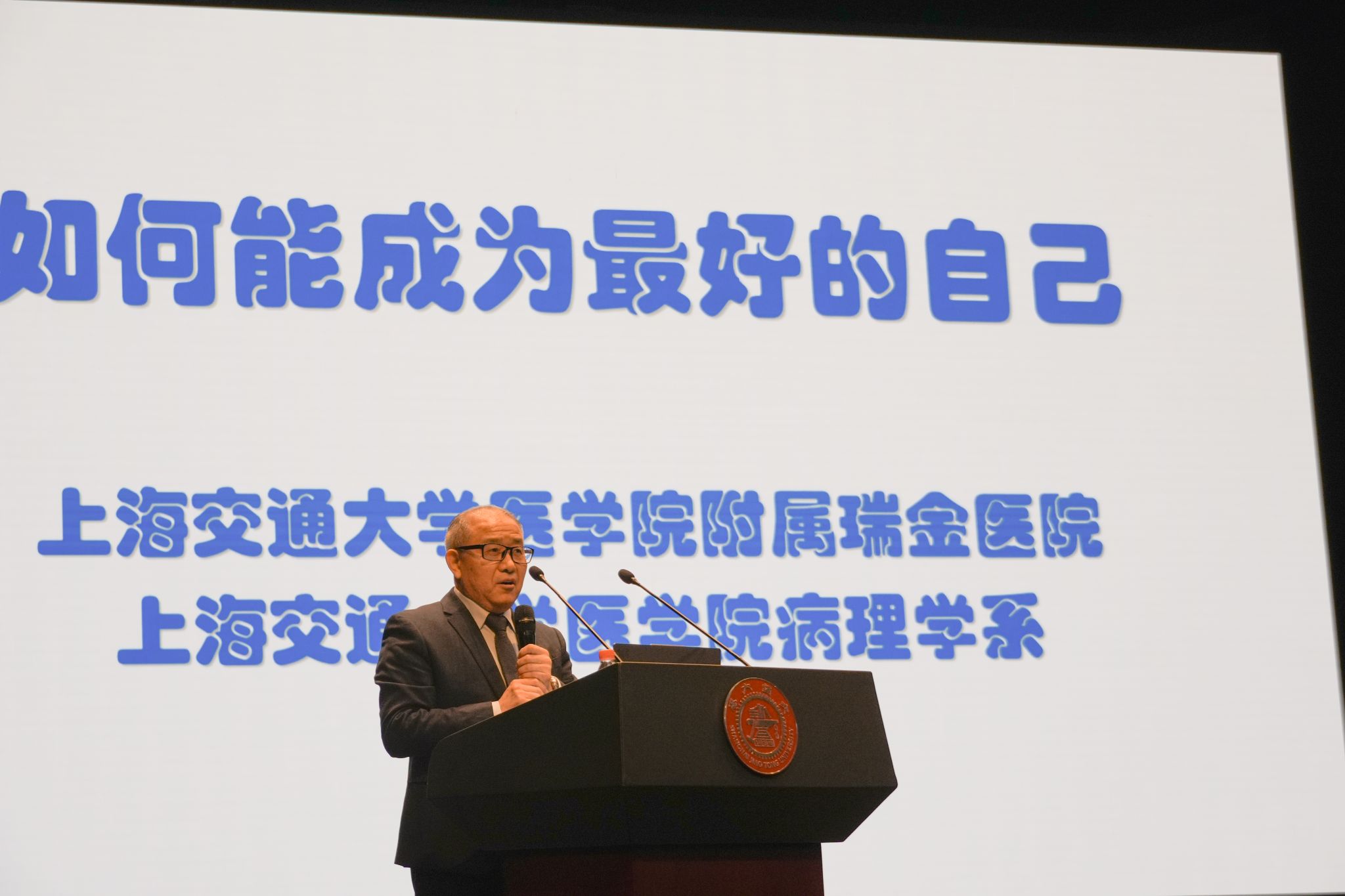 12月3日下午,上海交通大学医学院病理学系主任、附属瑞金医院病理科主任王朝夫教授做客健康中国课程,在闵行校区菁菁堂为2025级医学生带来题为《如何能成为更好的自己》的专题讲座。