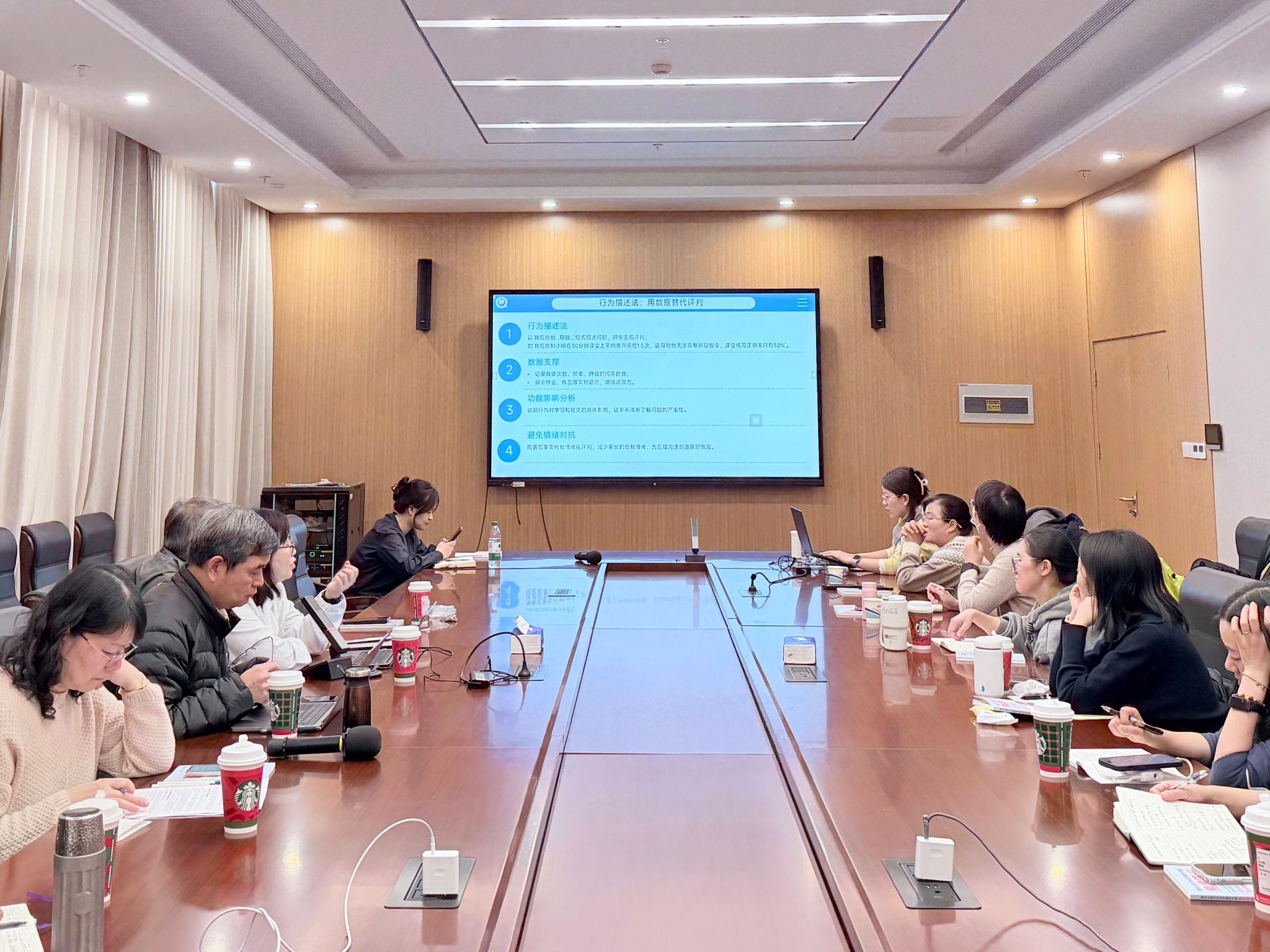 活动下半场,在主题为“自伤学生的心理支持与咨询” 专题研讨环节中,钱主任首先向与会教师系统讲解了非自杀性自伤行为的识别方法、风险评估维度及分级干预策略。尤其在对具有较高危机风险的学生进行干预时,她特别强调了私密沟通环境的营造、多人协作介入的必要性以及非协商性建议的运用等要点。接着,钱主任就与会教师分享的学生个案展开深入研讨,围绕来访者的“情感能力评估、ASD的识别”等问题提供了针对性的建议。