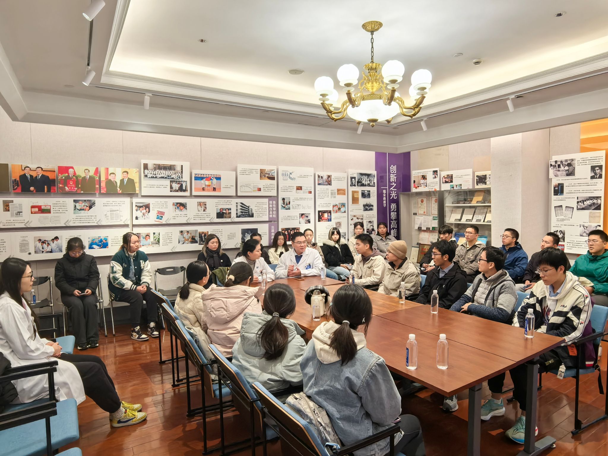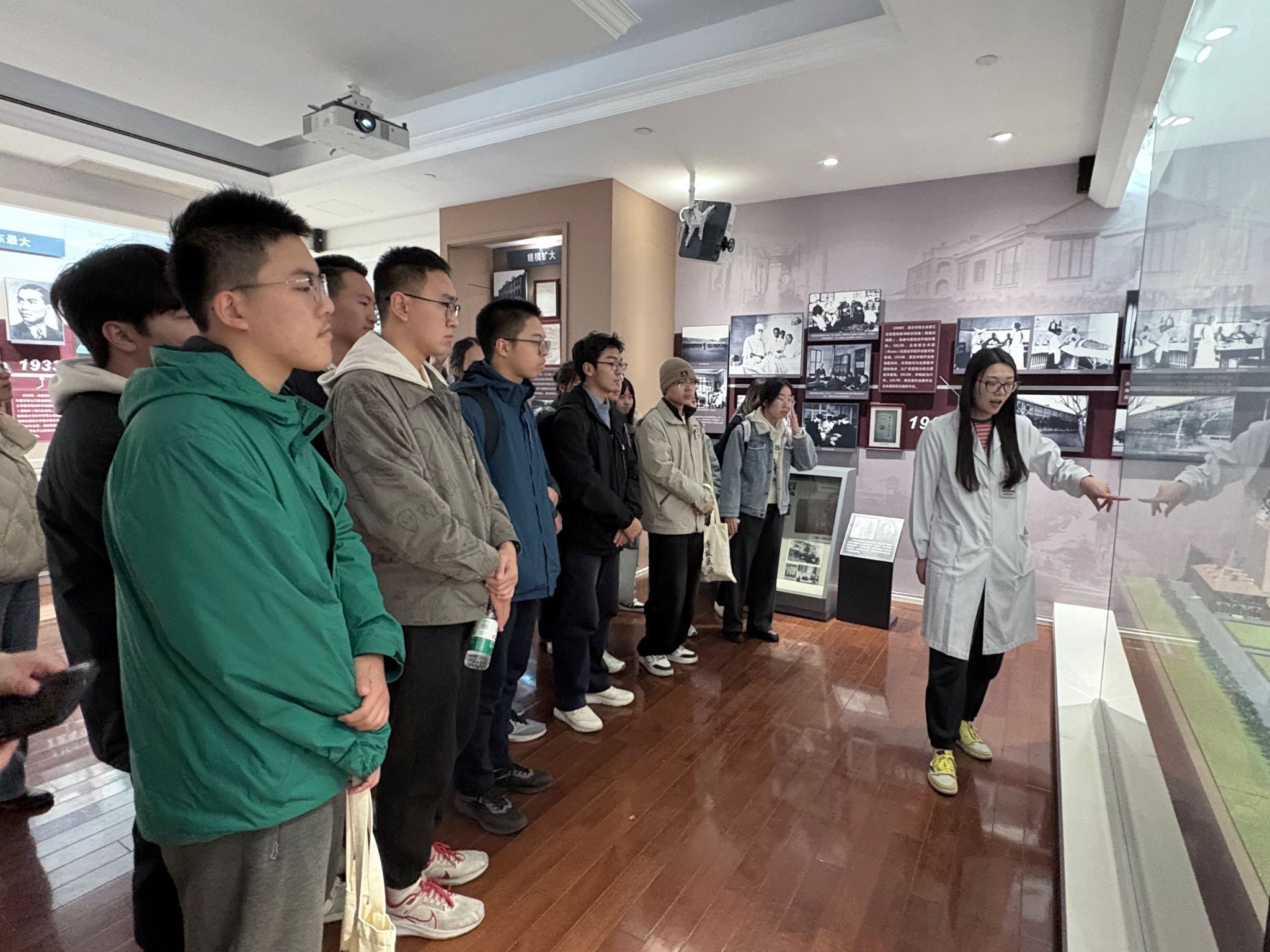 随后,同学们步入院史馆,瑞金临床医学院职前办公室教务老师于梦娜老师为大家介绍了馆内珍藏的一件件实物、一幅幅历史影像与背后的一段段动人故事,带领大家在沉浸式体验中真切触摸医院百年发展的峥嵘岁月,深刻体悟历代医家“广博慈爱、追求卓越” 的精神传承。