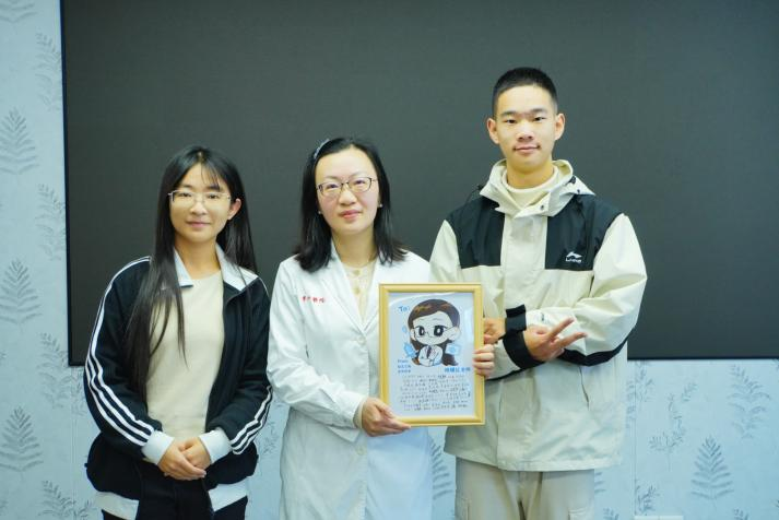 讲座结束后,班级学生代表向陆老师与赖老师赠送了由同学们亲手绘制并附有全班签名的卡通肖像画,以表达对两位老师悉心指导的诚挚感谢。这份充满心意的手作礼物令老师们倍感温暖,现场洋溢着温馨的师生情谊。
