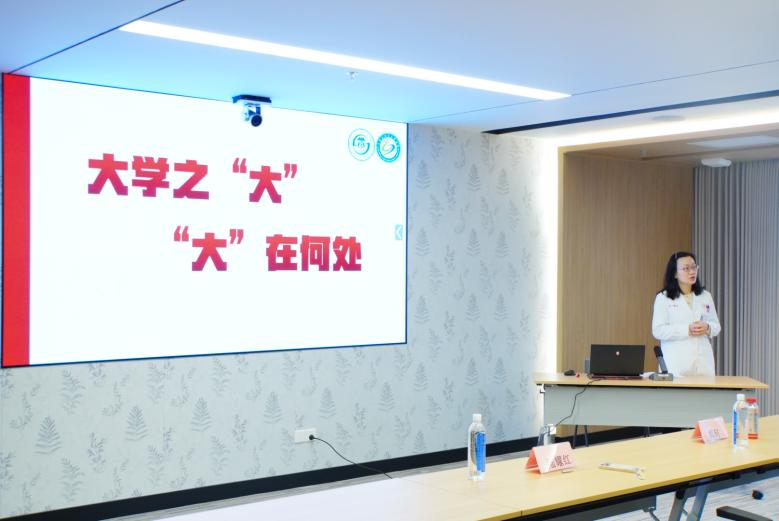 活动伊始,医学院教学办公室副主任陆耀红以“大学之‘大’”为题作首场讲座。她从经典教育思想切入,结合梅贻琦先生关于大学精神的论述,阐释了大学在知识传授之外所承担的人格塑造、价值引导与责任培育功能。陆耀红指出,医学教育不仅关乎技术能力的训练,更关乎人文素养与社会使命的涵养,勉励同学们在精进专业技能的同时,拓展学术视野,涵育医者情怀。讲座过程中,同学们围绕医学人文教育与学业规划等话题积极交流,现场氛围专注而融洽。