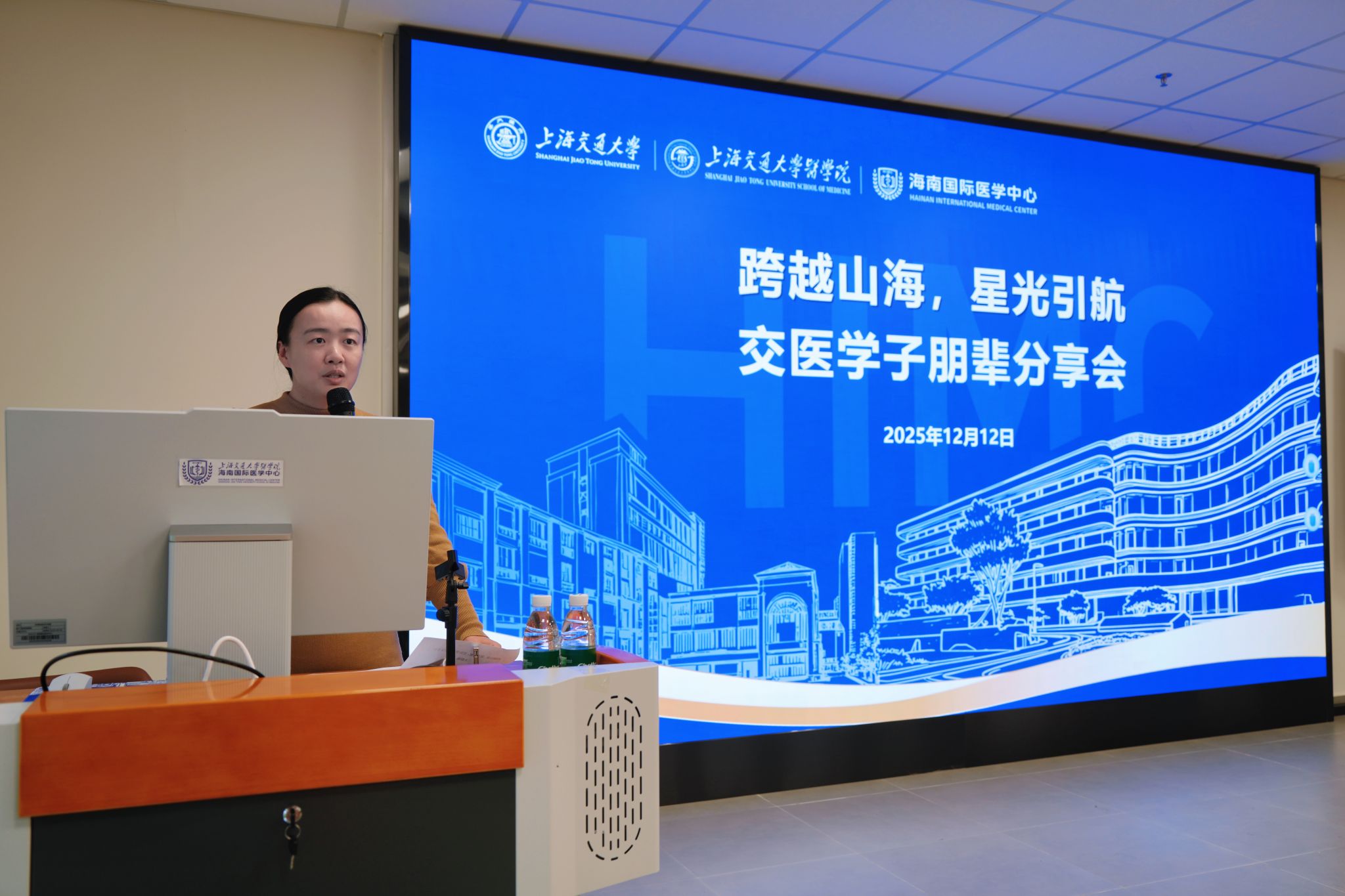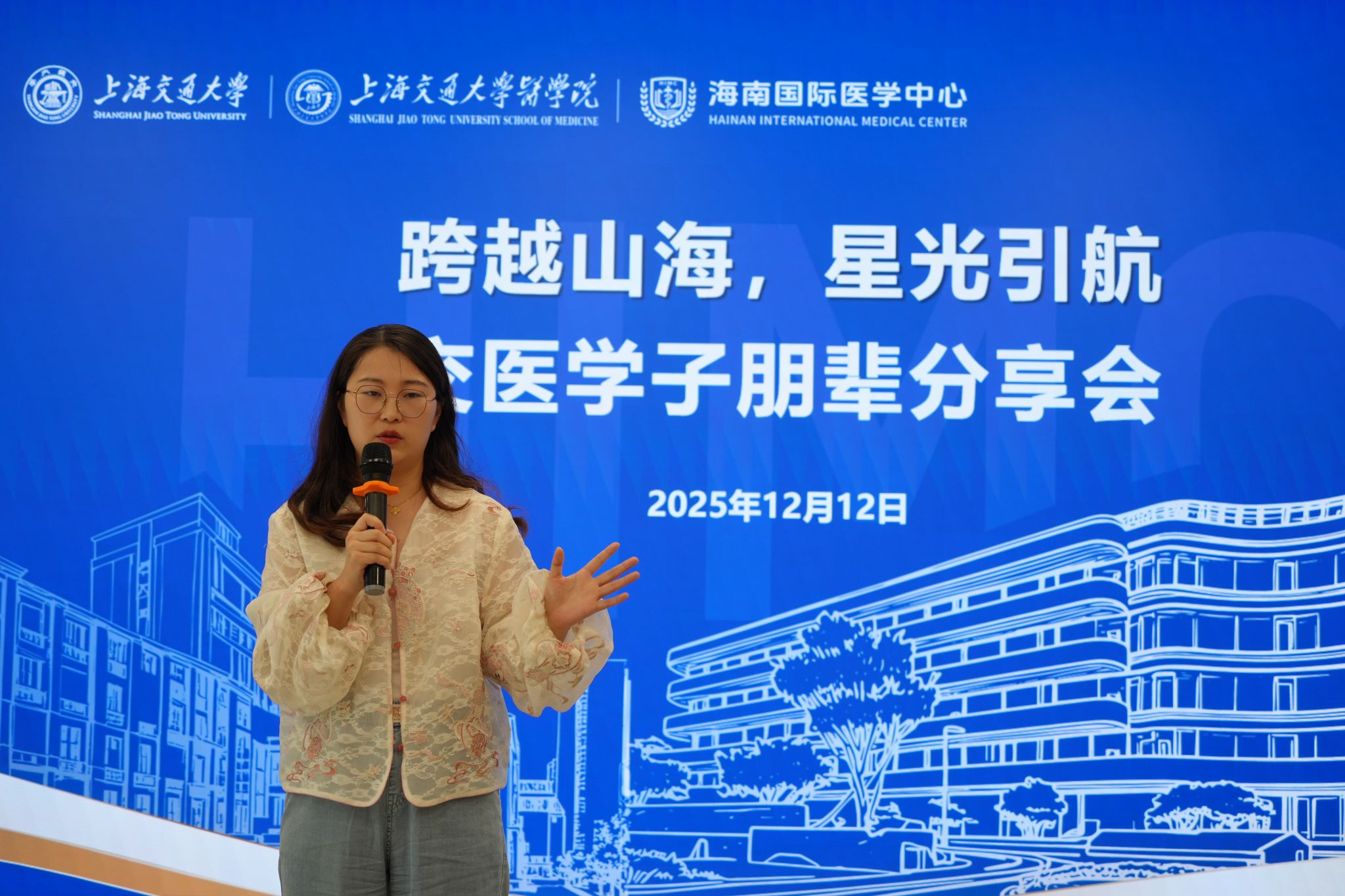 近日,交医学子朋辈分享会在上海交通大学医学院海南校区(海南国际医学中心)举行。活动邀请上海交通大学医学院本部两位入围研究生最高学术荣誉“学术之星”终评的高年级学生,与荣获研究生国家奖学金(新生组)的2025级海南专项研究生新生代表,围绕科研探索、学业规划及跨校区成长体验,同海南专项研究生展开深入交流。