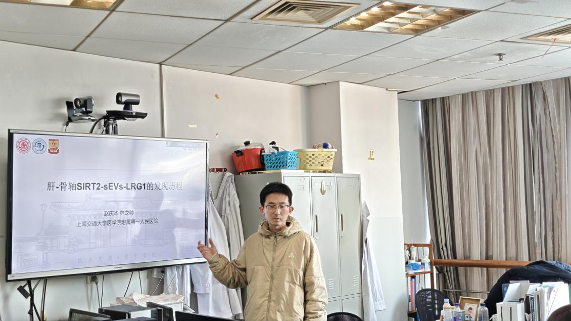 活动伊始,师生齐聚赵庆华老师办公室,聆听林龙帅学长分享其关于“肝-骨轴在骨质疏松中的作用机制”的研究成果。案例展示了从器官互作前沿出发、锁定关键分子、逐步剖析信号通路的科研完整链条,既阐明了实验设计的严谨范式与对照策略,又结合实践经验,提出未来可深化探索的研究方向。赵老师进一步指出,机制研究应以转化为导向,优先选择可控性强且符合伦理规范的研究路径,同时强调医工交叉在仿生学应用中的潜能与挑战,为学生勾勒出跨学科科研的宽阔视野。