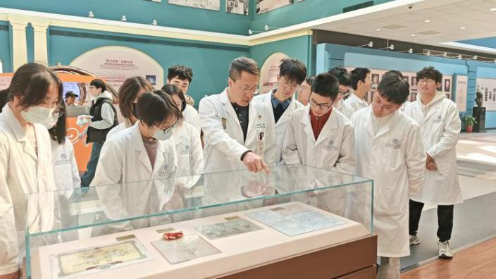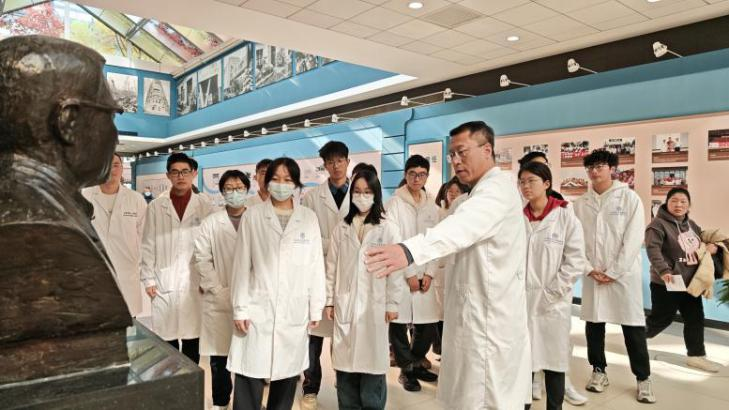 交流研讨结束后,同学们身着白大褂,走进周日仍繁忙运转的急诊创伤中心,实地感知急症医疗的高效节奏。在医院标志性的玻璃金字塔穹顶下,众人回顾了附属第一人民医院自教会医院起源,发展为集医疗、教学、科研于一体的现代化医学中心的光辉历程,感悟历代医学大家的济世情怀与学术贡献。