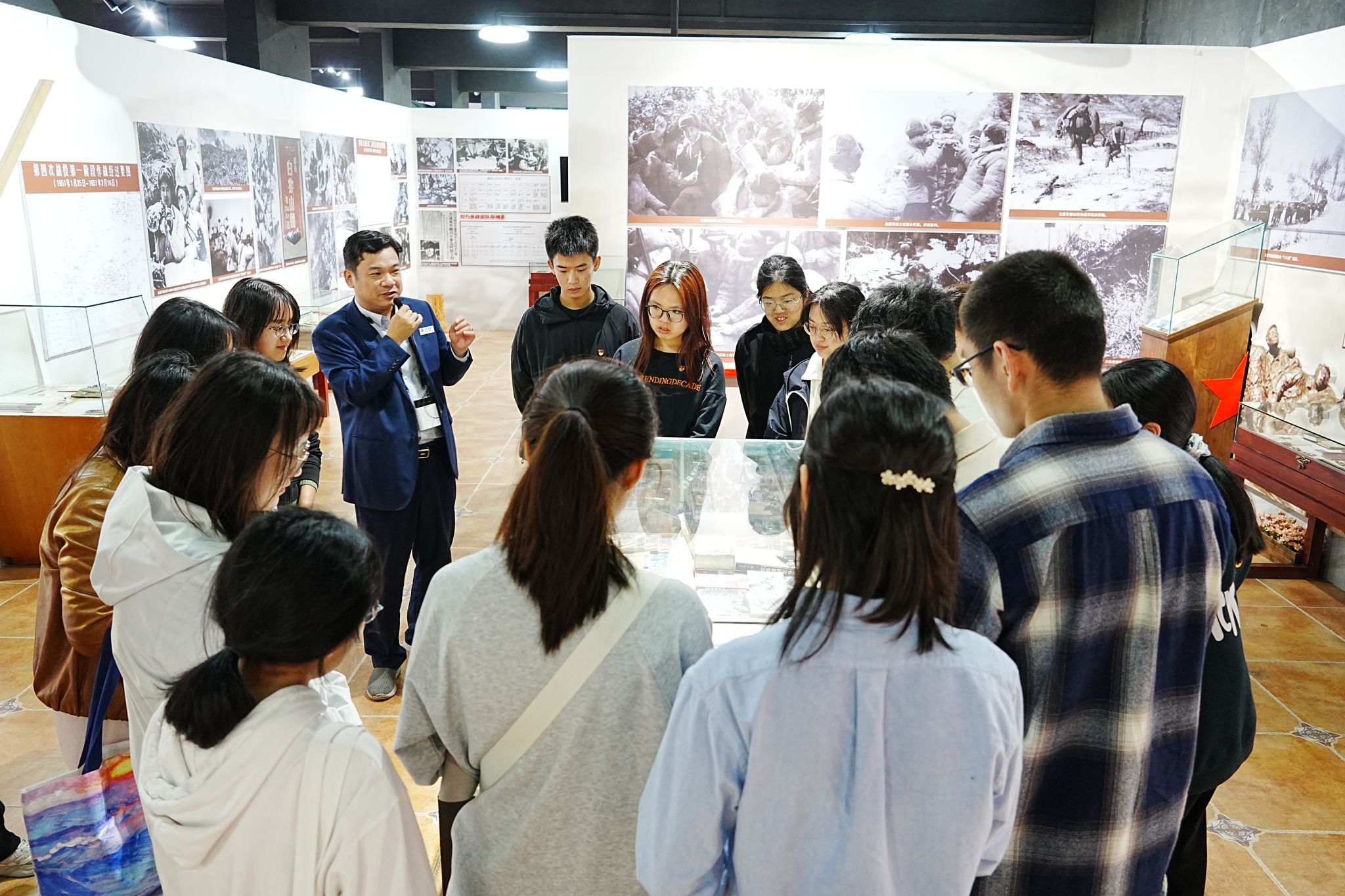 全体成员还参观了抗美援朝主题展厅。展厅内的史料与生动的讲解交相呼应,大家重温了志愿军将士浴血奋战的壮烈历史。“冰雕连”以意志震慑敌人,邱少云烈火焚身仍严守纪律,韩德彩勇擒敌军王牌飞行员……每一段事迹都震撼人心,在场成员无不动容。活动最后,大家自行参观了抗日战争主题展厅,深切感悟革命先辈的家国情怀与英雄气概。