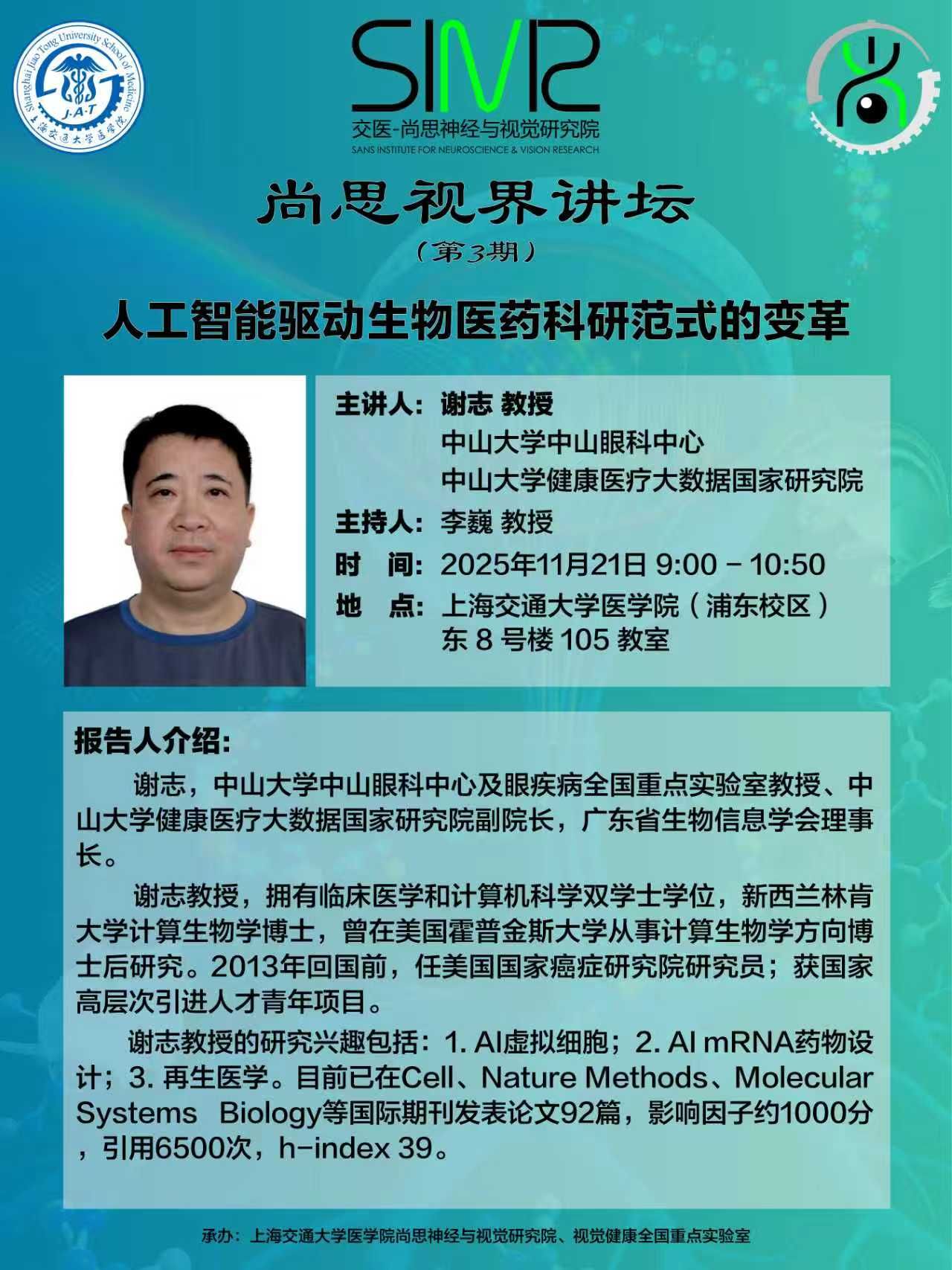 尚思视界讲坛:人工智能驱动生物医药科研范式的变革
