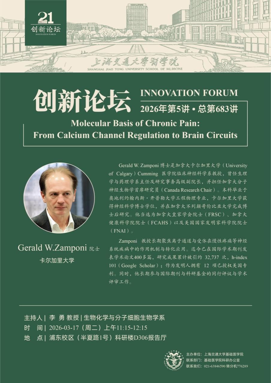 21创新论坛:Molecular basis of chronic pain: from calcium channel regulation to brain circuits