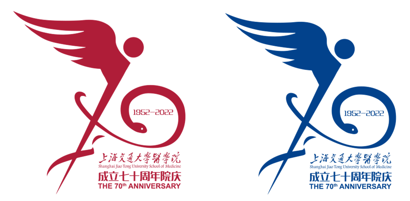 标识释义:上海交通大学医学院70周年院庆的标识将7、0两个数字融入蛇杖之中,杖为“7”,蛇为“0”,取意于秉持医学初心、锤炼高超医术;J、A、T三个字母融入整体设计,象征源自圣约翰、震旦、同德三所医学院校合并;以旗帜形式呈现,寓意为向创建“中国特色、世界一流、上海风格、交医特质”的医学院进发。