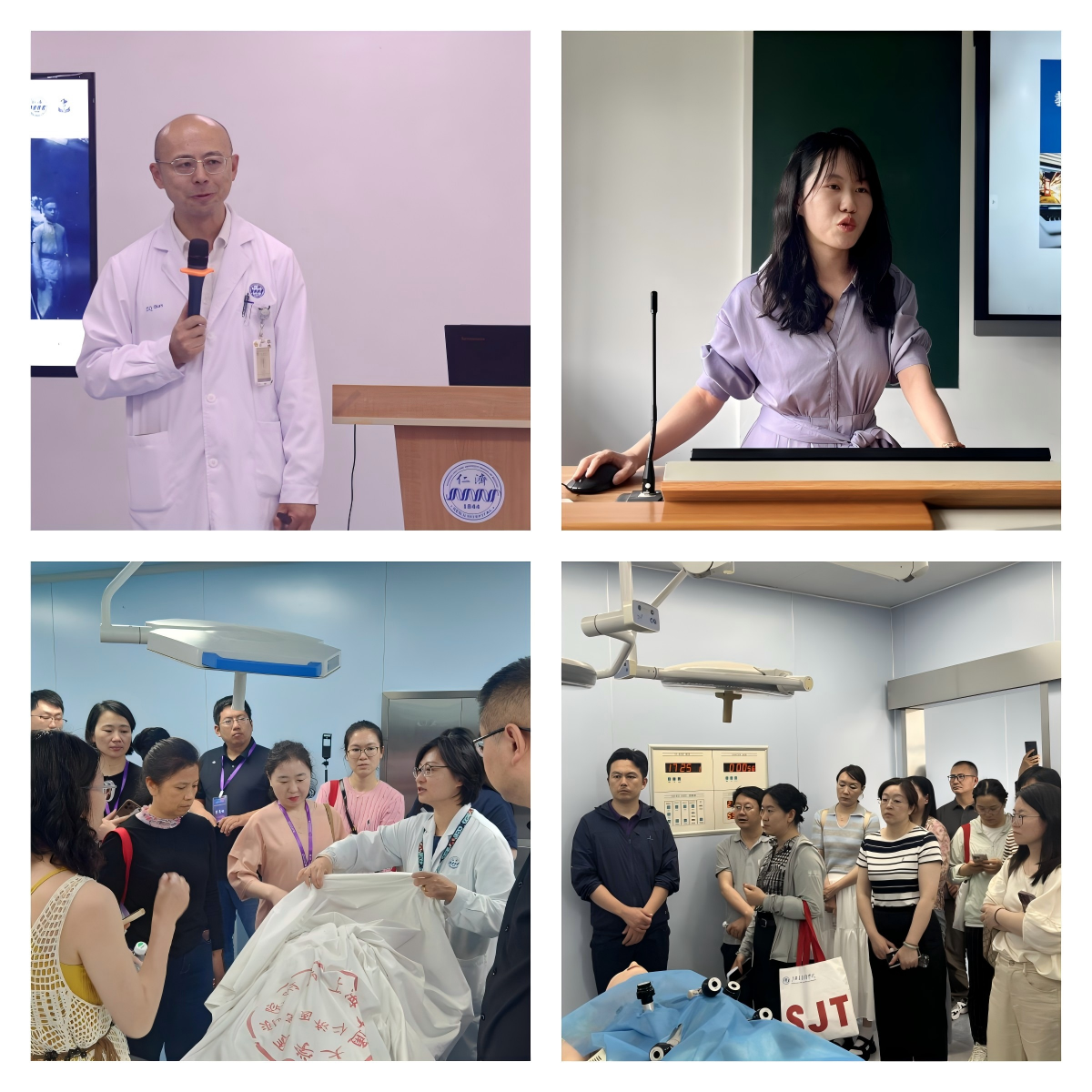培训期间,学员分组参访了仁济医院与上海九c院医学模拟实训中心。仁济医院模拟实训中心主任卞正乾通过“通过六步法建设实训模拟教学培训课程”讲座,结合中心硬件设施与教学案例,分享了模拟课程开发的全流程经验;上海九院临床实训中心孙欣怡老师以“情景模拟教学在临床教学中的应用探讨”为题做了详细讲解,并带领学员实地观摩创伤急救、外科缝合等模拟教学场景,直观展现了高仿真模拟在临床思维培养中的独特价值,让大家实地感受到了先进的模拟教学模式。两组学员都在参访交流中收获颇丰,对临床实训教学有了更直观的认识和更深入的思考。